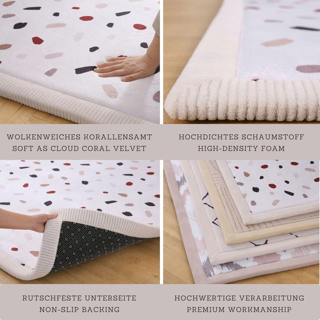 • Pflegeleicht und hygenisch – diese Spielmatte für Kinder kann in Sekundenschnelle mit einem Staubsauger oder einem feuchten Tuch und Seife gereinigt werden. Der flauschige Babyteppich ist bei 30 C handwaschbar und für die Fußbodenheizung geeignet. DESIGNED IN GERMANY