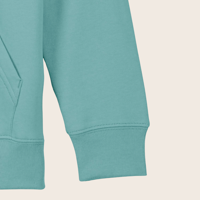 Der Hoodie hat einen genderneutralen Schnitt und ist unter fairen und ökologischen Bedingungen hergestellt. Er besteht aus 100% GOTS-zertifizierter Bio-Baumwolle. Das weiche Material sorgt für ein angenehmes Tragegefühl bei allen Abenteuern, die daheim oder im Freien warten.