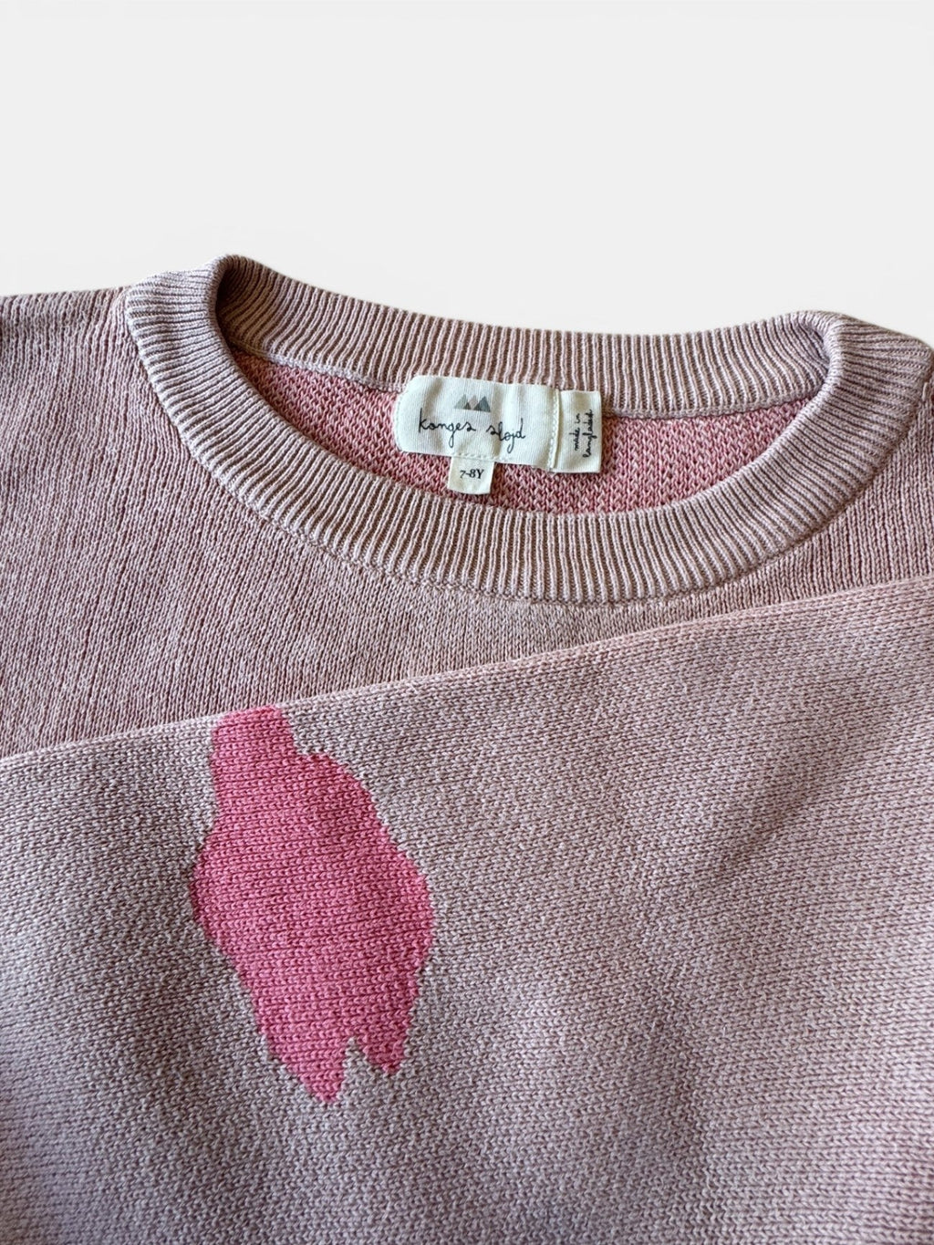 Dieser süße Jaquard-Pullover, Größe 122/128, in Puder mit pinken Wölkchen ist von Konges Slojd. Er ist aus weicher Baumwolle gefertigt und befindet sich in einem guten Zustand.