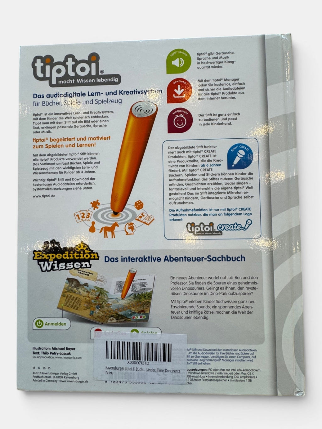 Interaktives Lern- und Abenteuerbuch mit tiptoi®-Technologie zum Thema Vulkane. Das Buch ist für Kinder im Alter von 7-10 Jahren geeignet und fördert spielerisch das Wissen und die Fantasie durch interaktive Inhalte und Geräusche. Die Seiten sind farbenfroh gestaltet, um die Neugier der Kinder zu wecken. Das Produkt ist in einem neuwertigen Zustand und enthält die notwendige Ausstattung für die Nutzung der tiptoi®-Technologie. NP: 21€