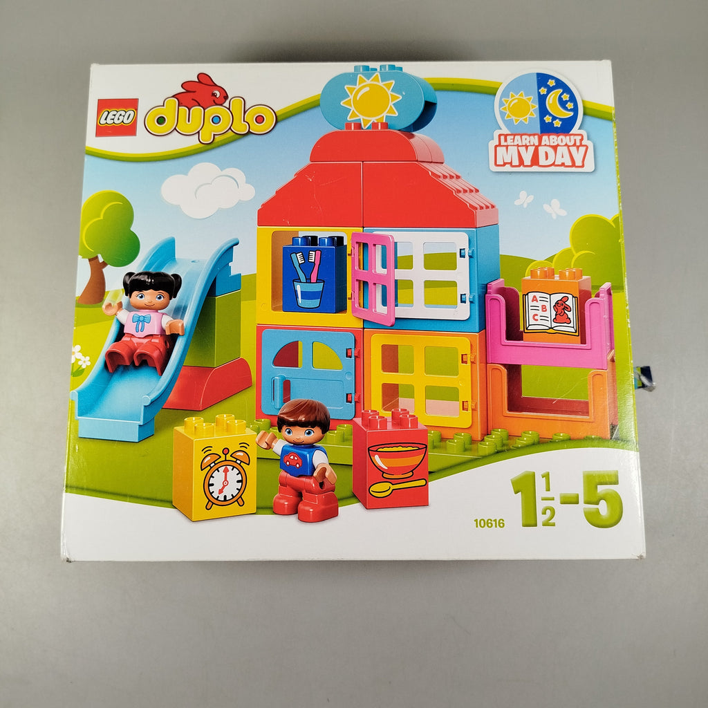 Hol dir das LEGO DUPLO Set Learn About My Day 10616 und entdecke spielerisch den Tagesablauf. Mit bunten Bausteinen, Figuren und Zubehör können Alltagssituationen nachgebaut und benannt werden. Ideal für Kinder von 1½ bis 5 Jahren, um erste Rollenspiele zu erleben. Das Set ist vollständig und in sehr gutem Zustand mit Originalverpackung. Gib diesem langlebigen Spielzeug ein neues Zuhause und fördere spielerisch das Lernen über den Tag.