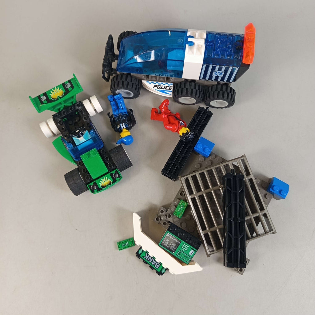 LEGO Jack Stone – 4608 ist ein LEGO Bau-Set, das zwei Figuren, ein sechsrädriges Polizeifahrzeug, ein grünes Auto sowie eine Bank- bzw. Gitterstruktur umfasst. Zusätzlich sind mehrere bedruckte Geld-Kacheln als Zubehör enthalten. Das Set fördert kreatives Bauen und Rollenspiel. Altersempfehlung: 6–9 Jahre. Achtung: Nicht für Kinder unter 3 Jahren geeignet, da Kleinteile verschluckt werden können.