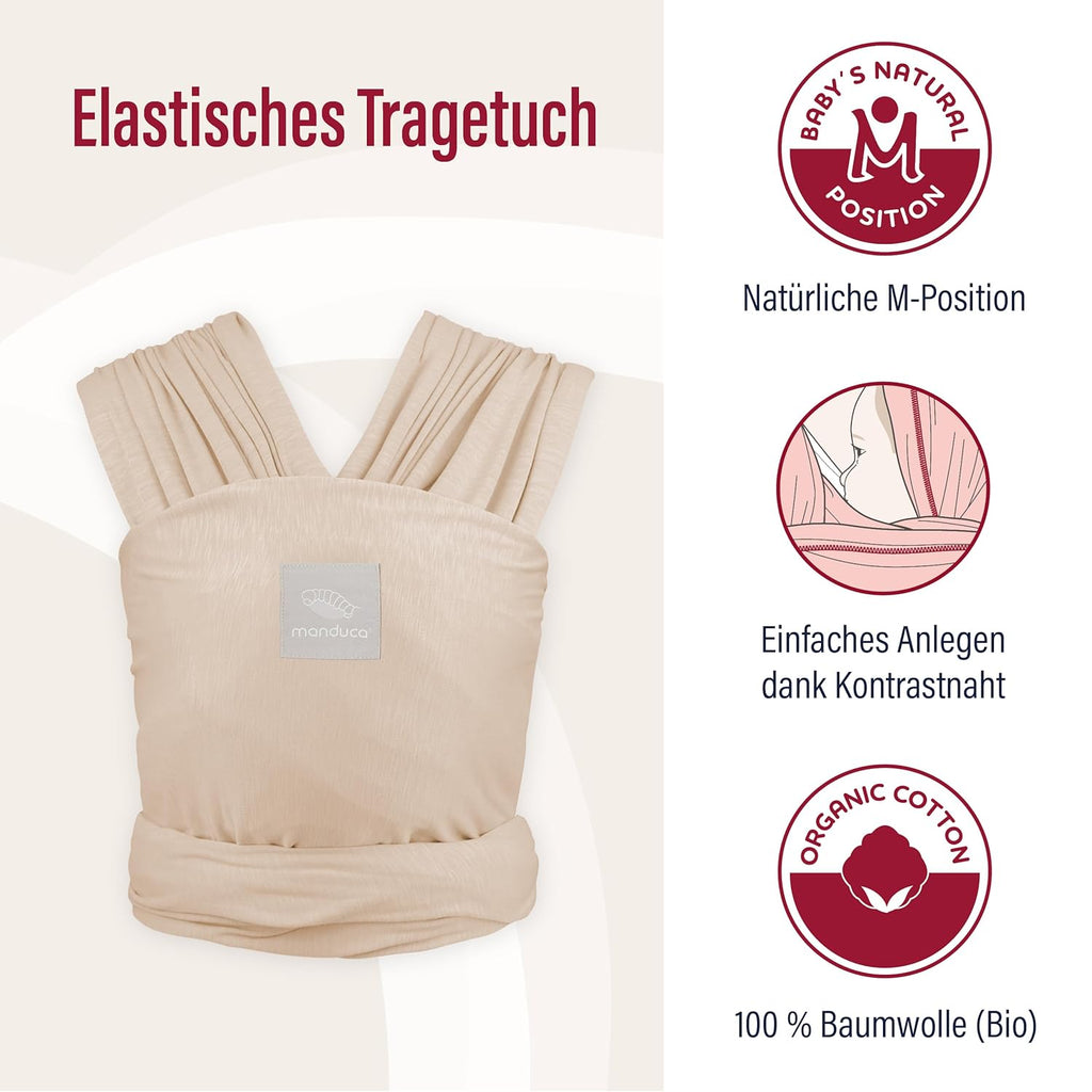 manduca Sling - my baby sling: Das elastische, ökologische Jersey-Tragetuch in klaren, schönen Farben ist durch die einfach zu erlernende Bindeweise und das kuschelig weiche, anschmiegsame Material aus 100 % Bio-Baumwolle ein idealer Begleiter in den ersten Monaten nach der Geburt. Dank speziell bi-elastischem Strickstoff ist die manduca Sling elastisch und stabil zugleich - ganz ohne Elasthan. Es ist atmungsaktiv und mit einem Eigengewicht von nur ca. 540 g eines der leichtesten Jersey-Tücher. One-Size: Die manduca Sling hat eine Einheitsgröße von über 5 m Länge und 60 cm Breite: passend für alle Trageeltern und mit genügend Spielraum für Nackenstütze und gute M-Position. manduca Sling kann mit nur einer Grundbindetechnik auch ohne Kind vorgebunden werden. Schmal zulaufende Enden und eine ebenso schöne wie praktische Kontrastnaht (wie von Trageschulen empfohlen) ermöglicht einfaches Binden. Getestet und zugelassen für Babys von 3,5 bis 15 kg - bester Tragekomfort bis ca. 9 kg (ideal für Neugeborene und kleine Babys). 100 % Baumwolle (kontrolliert biologischer Anbau), besondere Melange-Optik in vielen schönen Farben, Maschinenwäsche 40°, trocknergeeignet