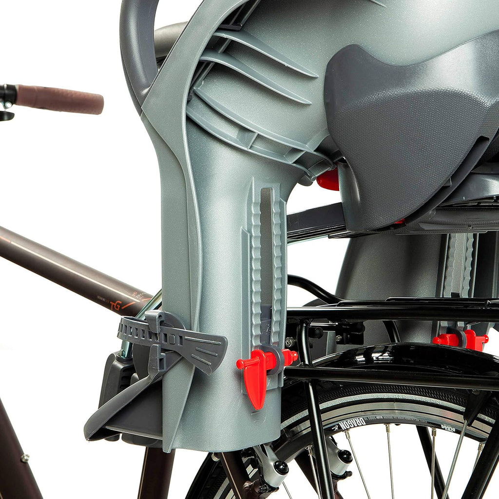 Der "10+" ist als Hinterrad-Fahrradsitz mit verstellbarer Rückenlehne und automatischem Schwerpunkt-Sicherungs-System ein idealer Begleiter für Spazierfahrten mit dem Fahrrad. Das spezielle Befestigungssystem macht die Montage am Sitzrohr des Rads schnell und einfach; dabei passt es für Rahmen zwischen 28 und 40mm, auch bei E-Bikes. Der Sitz kann auf dem Trägerarm der Befestigung in verschiedenen horizontalen Positionen befestigt werden (weiter nach vorne oder nach hinten), um einen korrekten Sitz auf verschiedenen Fahrradtypen sicherzustellen. Der Trägerarm ist dabei natürlich ebenso im Lieferumfang enthalten wie die abschließbare Rahmenhalterung mit Diebstahlschutz. Die Rückenlehne kann bis zu einem Winkel von 15 Grad geneigt werden, um auf allen Rädertypen einen komfortablen und sicheren Sitz zu erreichen. Die Sitzfläche schiebt sich bei geneigter Rückenlehne automatisch nach vorne um die Balance über dem Hinterrad zu halten, der Schwerpunkt bleibt gleich. Dank diesem patentierten Schwerpunkt-Sicherungs-Systems können Sie den Fahrradsitz in Ruheposition bringen, auch wenn das Kind bereits im Sitz ist. Die Fußstützen des 10+ sind von hinten in 15 Positionen in der Höhe verstellbar. Das Kind kann dabei die Füßchen in der Fußstütze lassen. Sicherheitsgurte verhindern Kontakt zwischen Beinen und Radspeichen. Der 3-Punkt-Gurt des Sitzes ist in zwei Positionen und in der Länge verstellbar, was Komfort und Sicherheit garantiert. Kinder bis zu 22kg können auf dem 10+ sicher mitgeführt werden. Der Reflektor auf der Rückseite sorgt für erhöhte Sichtbarkeit auf der Straße. Ein Stützsystem dämpft Vibrationen, die durch Unebenheiten der Straße verursacht werden. Sitz- und Rückenpolsterung sind thermogeformt und wasserabweisend und witterungsbeständig. Diese Polsterung kann auch handgewaschen werden (mit neutraler Seife und lauwarmem Wasser). Auf die Sicherheit des 10+ ist Verlass: Alle Inhaltsstoffe sind absolut unschädlich und giftfrei. Der Sitz ist TÜV-GS-geprüft und -zertifiziert und erfüllt alle Sicherheitsanforderungen der Norm EN 14344 für Fahrradsitze. Entwickelt, entworfen und produziert wird in Italien.