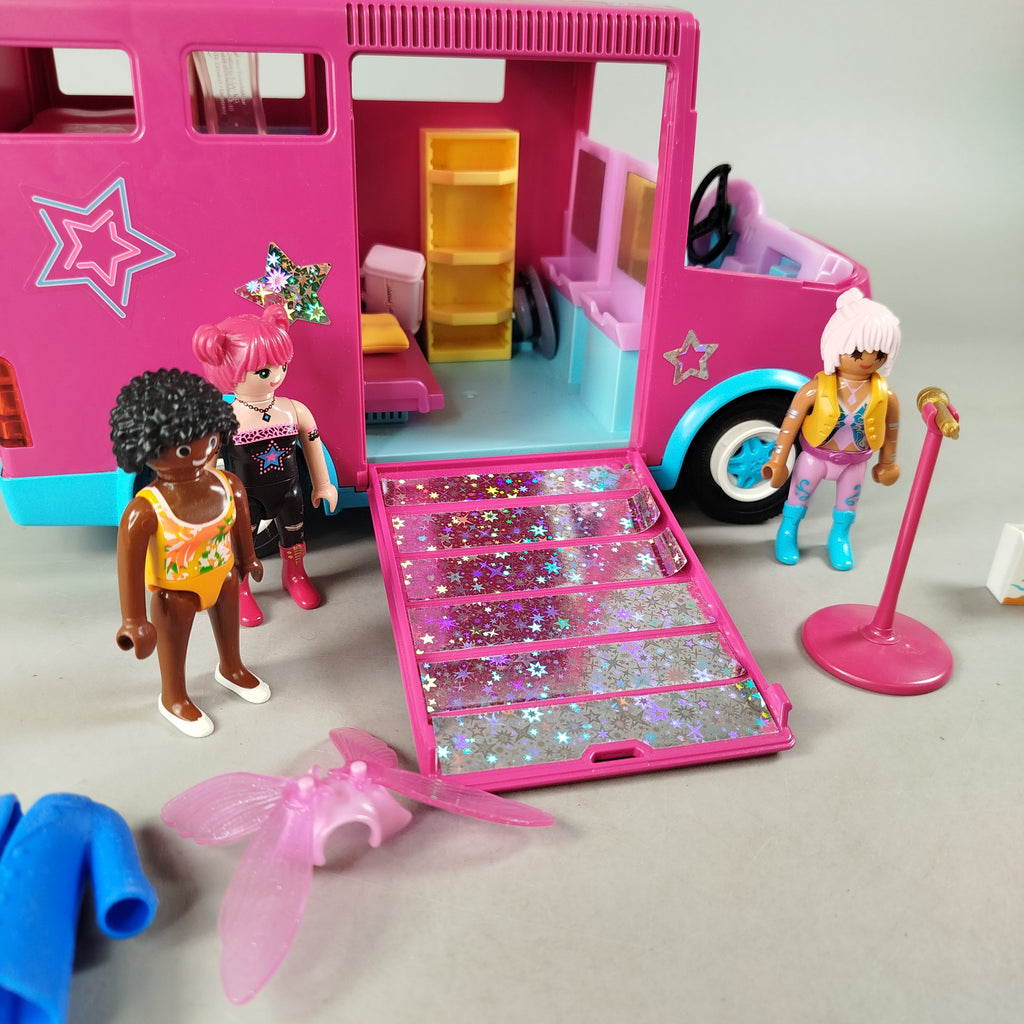 Hol dir das Playmobil Tourbus-Spielset und bring Musik und Abenteuer ins Kinderzimmer! Der farbenfrohe Bus lässt sich seitlich öffnen und bietet mit ausklappbarer Glitzer-Rampe viele Spielmöglichkeiten rund ums Unterwegssein und Auftreten. Enthalten sind Figuren und thematisch passendes Zubehör für fantasievolle Rollenspiele. Gib diesem Spielzeug ein neues Zuhause und schenke ihm ein zweites Leben. Geeignet für Kinder im entsprechenden Alter. Sicherheitshinweis gemäß GPSR: Enthält Kleinteile, nicht geeignet für Kinder unter 3 Jahren. Erstickungsgefahr!