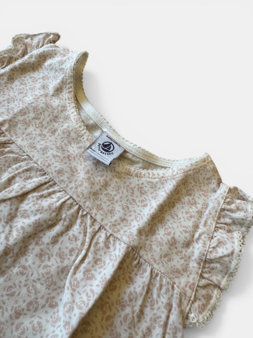 Dieser Pyjama für Mädchen von Petit Bateau besticht durch sein süßes Design in Beige mit einem niedlichen Blumenmuster.