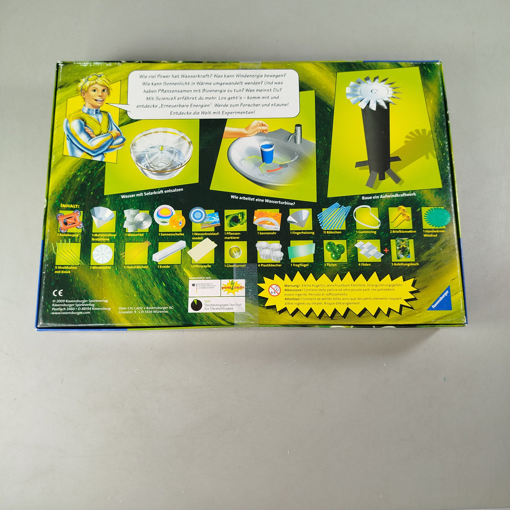 Hol dir das Ravensburger Experimentierset Erneuerbare Energien und tauche spielerisch in die Welt von Windkraft, Wasserkraft, Sonnenenergie und Biomasse ein. Der Experimentierkasten bietet zahlreiche spannende Versuche rund um nachhaltige Energiegewinnung und technisches Grundverständnis. Mit verschiedenen Bauteilen, einem Experimentiertray, Aufklebern und Anleitung lädt das Lernspielzeug zum Entdecken und Ausprobieren ein. Gib diesem Spielzeug ein neues Zuhause und unterstütze nachhaltiges Spielen mit Lernspaß. Sicherheitshinweis gemäß GPSR: Enthält Kleinteile, nicht geeignet für Kinder unter 3 Jahren.