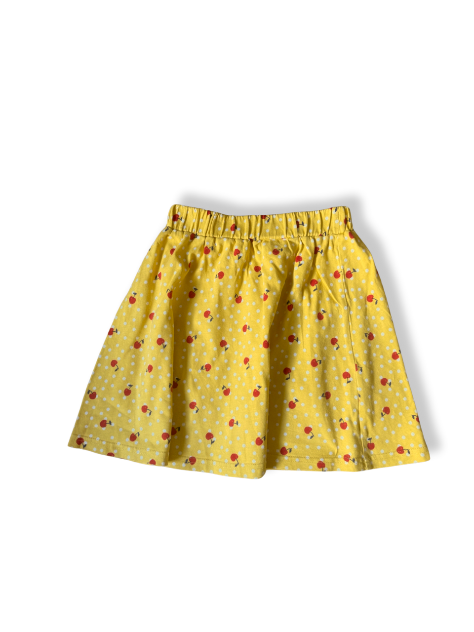 Dieser fröhliche gelbe Rock ist perfekt für sonnige Tage. Das niedliche Kirschmuster und die verschiedenen Punkte verleihen ihm eine verspielte Note. Aus sanfter Baumwolle gefertigt, bietet er hohen Tragekomfort und Bewegungsfreiheit. Ob für den Spielplatz oder einen Ausflug, dieser Rock ist ein vielseitiges Kleidungsstück.