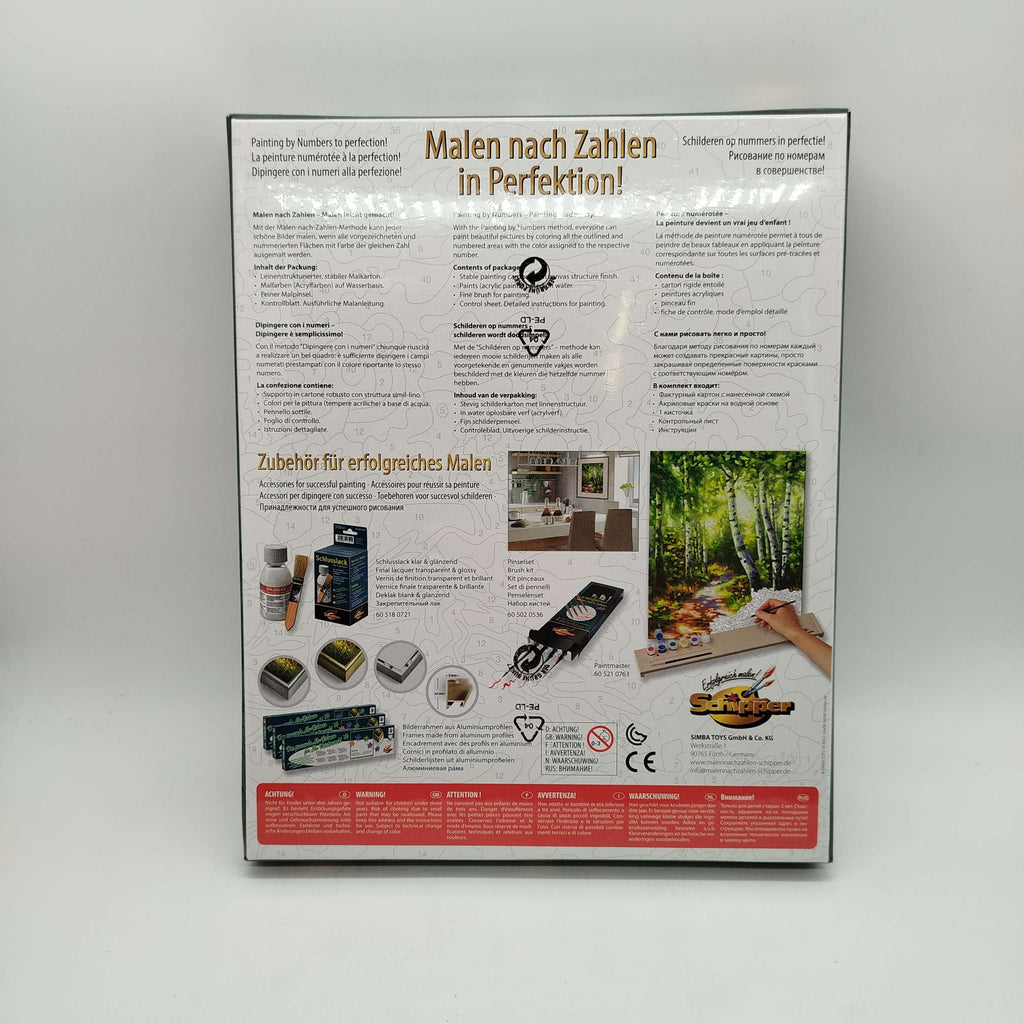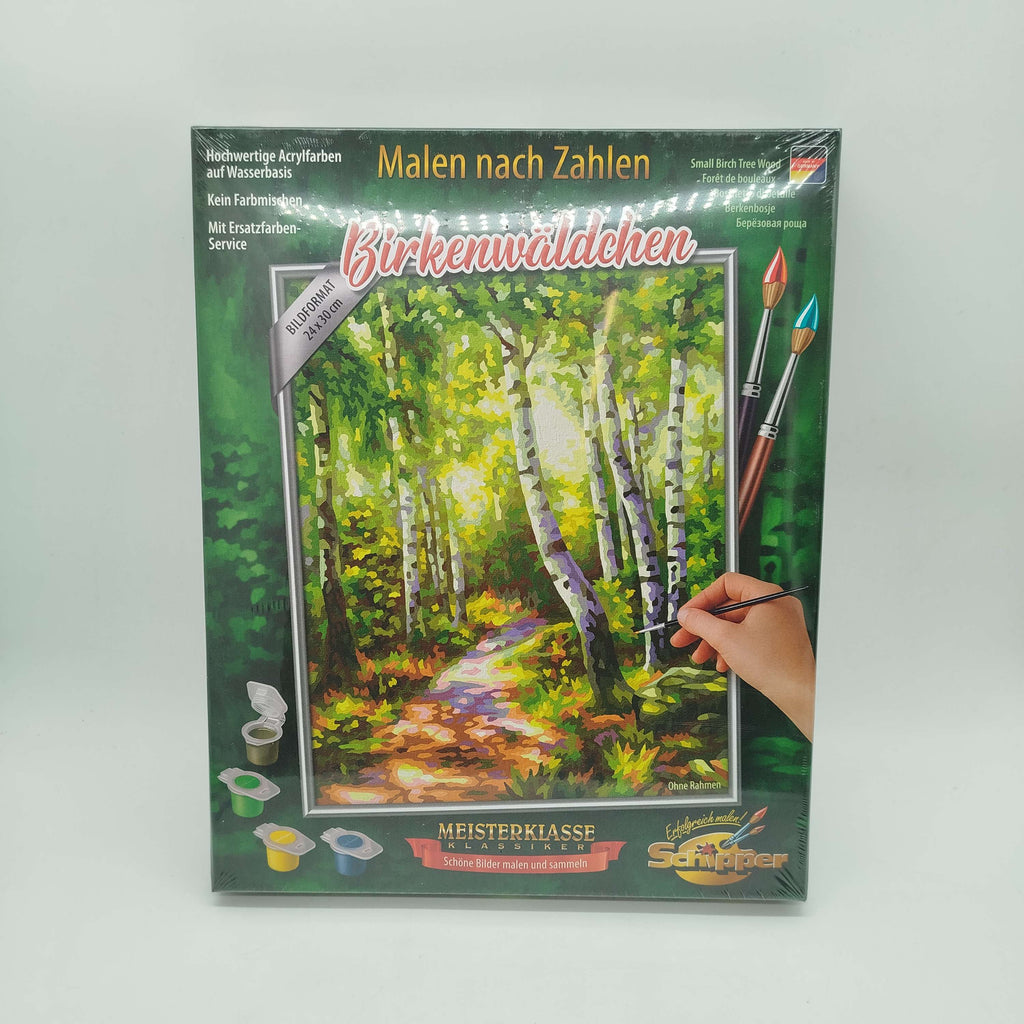 Das Schipper Bastelset Malen nach Zahlen – Birkenwäldchen – 609240801 bietet ein kreatives Malerlebnis mit Motiv eines Birkenwäldchens. Das Set umfasst eine Malvorlage, hochwertige Acrylfarben auf Wasserbasis, einen Pinsel und eine Anleitung, um das Bildformat 24x30 cm zu gestalten. Altersempfehlung: 10–13 Jahre. Achtung: Nicht für Kinder unter 3 Jahren geeignet, Erstickungsgefahr aufgrund verschluckbarer Kleinteile.