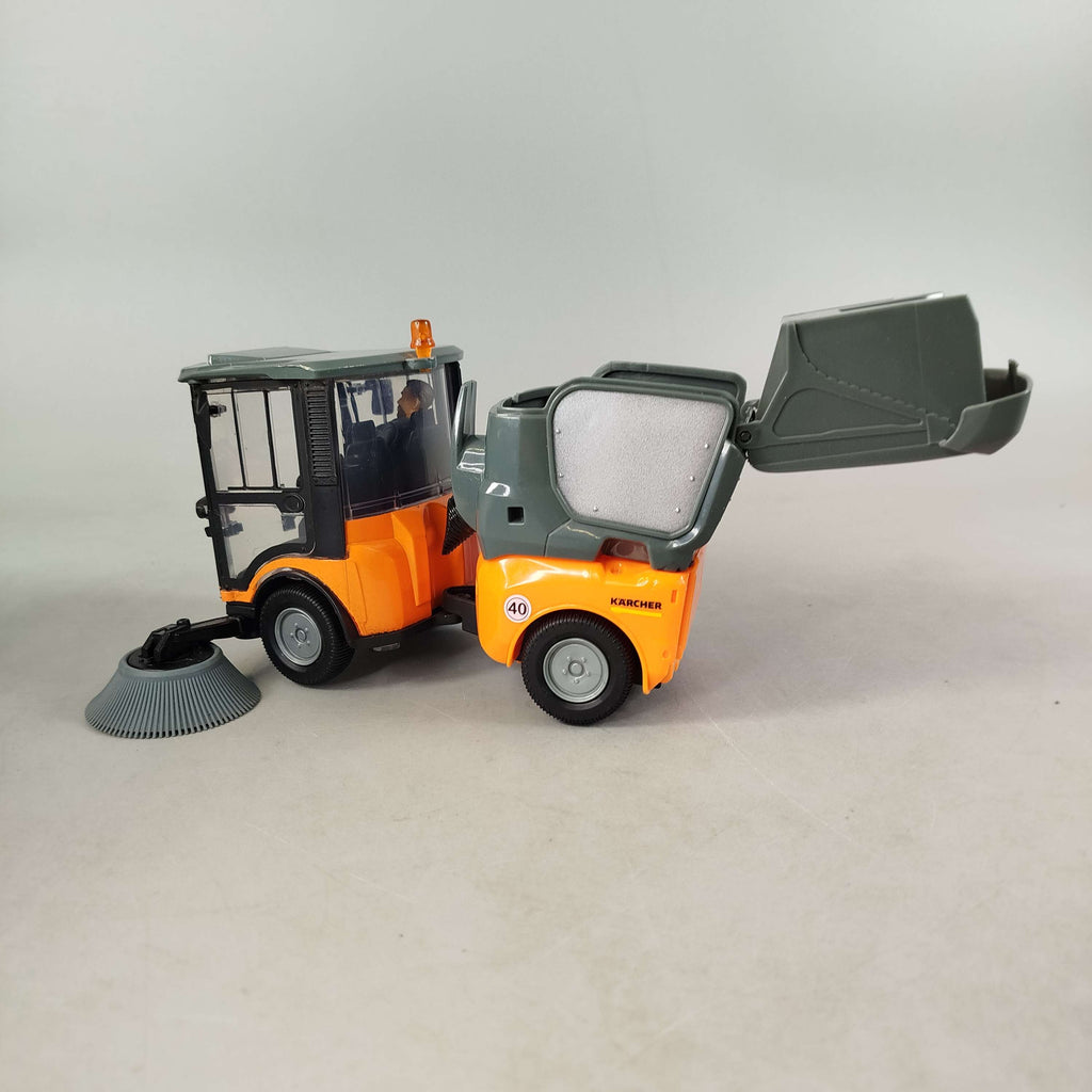 simba dickie group Kärcher MC 130 Street Sweeper ist ein detailgetreues Kinderfahrzeug im Bereich Werkbänke & Kinderwerkzeug. Das orange-graue Fahrzeug verfügt über zwei große Frontbürsten, eine orange Warnleuchte auf dem Kabinendach sowie eine kipp- und öffnungsfähige Heckklappe. Zum Set gehört eine männliche Fahrerfigur. Altersempfehlung: 3–5 Jahre. Achtung: Nicht für Kinder unter 3 Jahren geeignet.