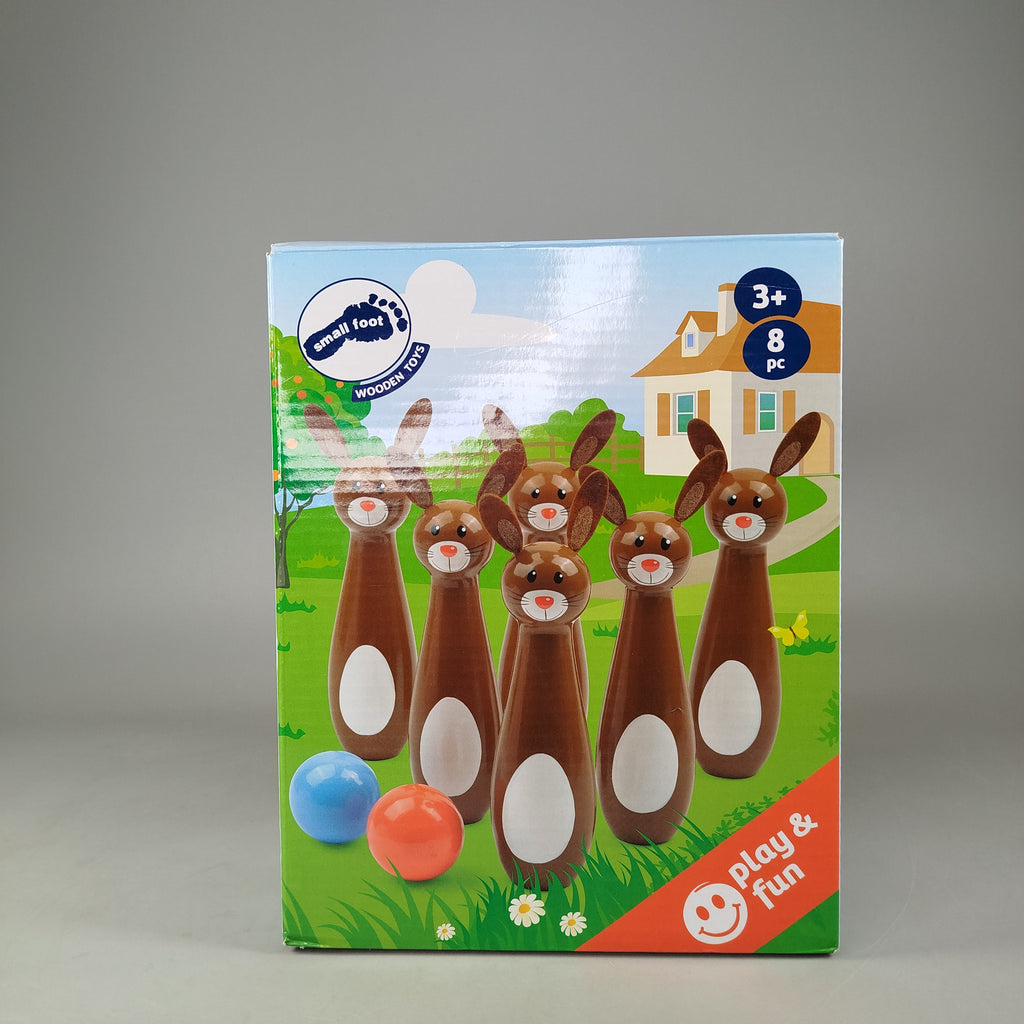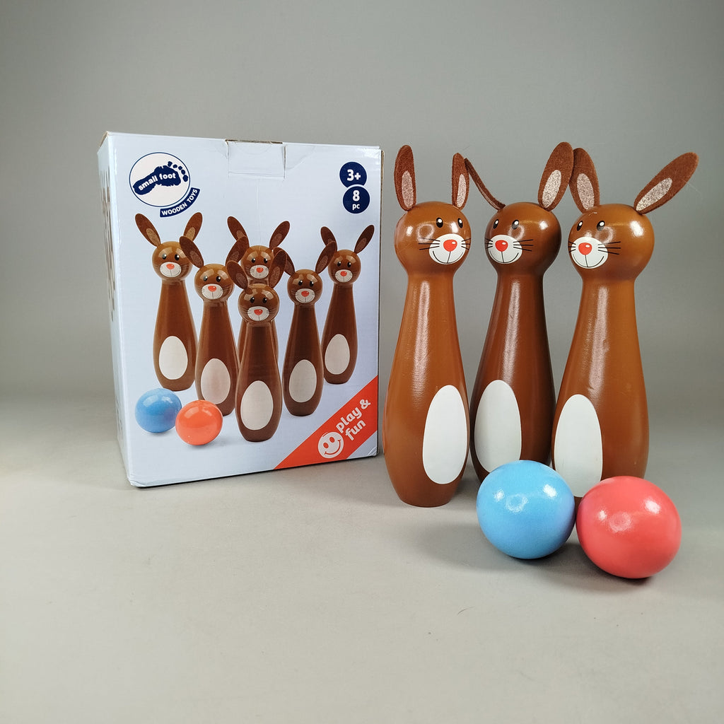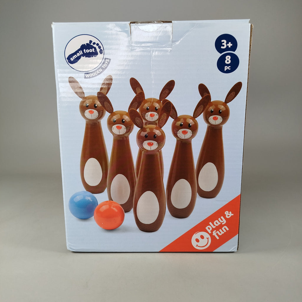 Hol dir das niedliche small foot Kegelspiel aus Holz und bring Spaß in jedes Kinderzimmer! Das Set besteht aus sechs Hasen-Kegeln und zwei Kugeln – perfekt für Geschicklichkeit und Koordination. Ein Hase ist beschädigt, ansonsten ist das Set vollständig und in gutem gebrauchten Zustand. Verpackt in der originalen Box aus der Play & Fun Reihe. Hinweis: Nicht für Kinder unter 3 Jahren geeignet, da Kleinteile verschluckt werden können.