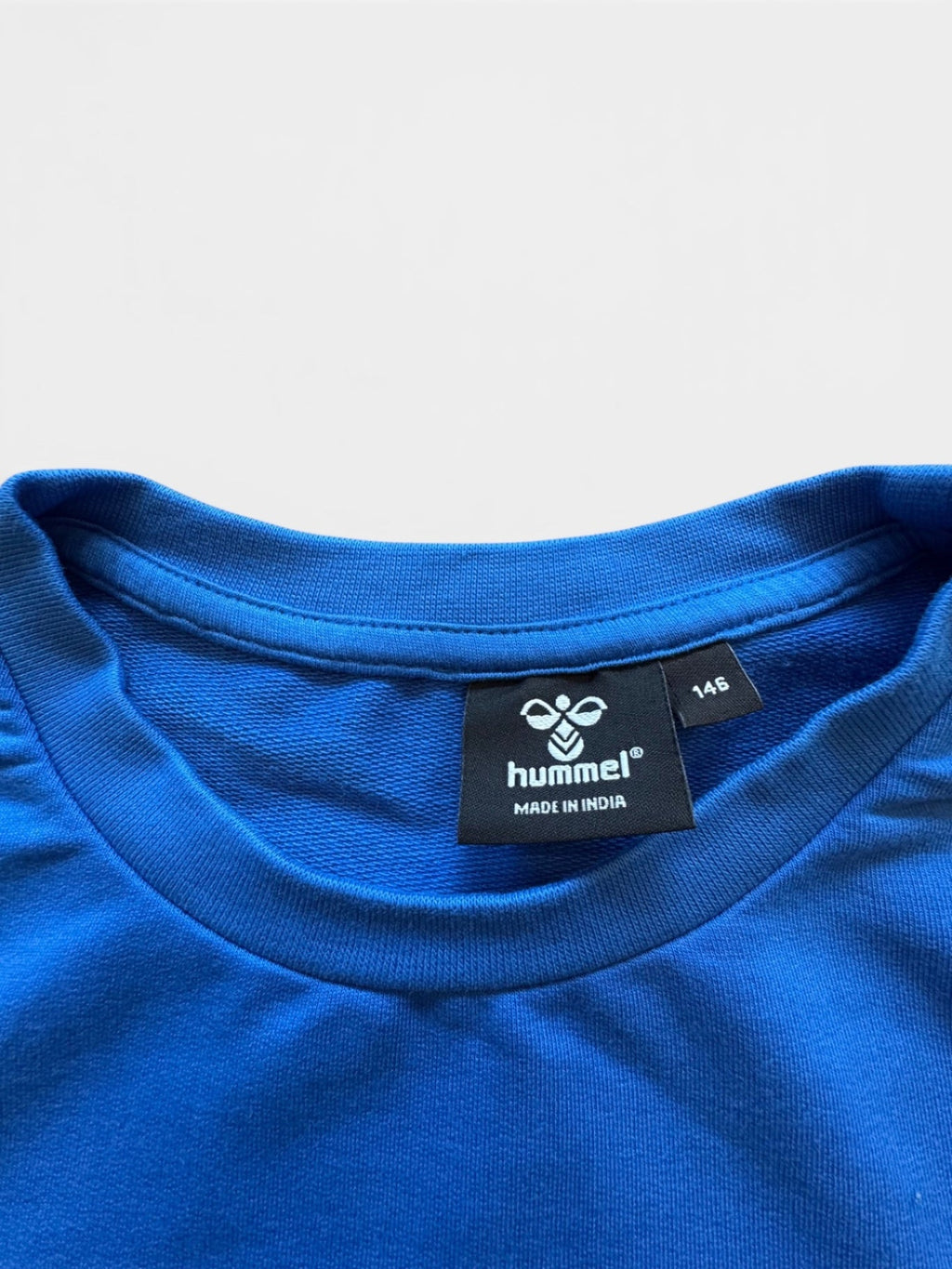Dieses blaue Sweatshirt von Hummel besticht durch seinen sportlichen Look und bequemen Tragekomfort. Es verfügt über langärmlige Passform mit elastischen Bündchen an den Ärmeln und Hüfte für eine gute Passform, ideal für aktive Kinder. Das Design ist klassisch und vielseitig kombinierbar. Sehr guter Zustand, keinerlei Mängel!