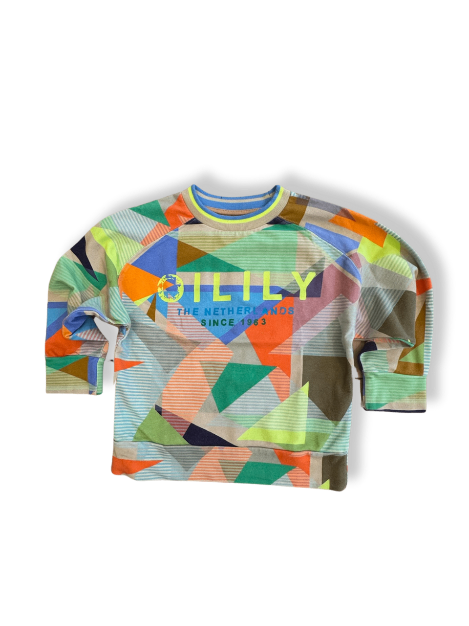 Dieses auffällige Sweatshirt besticht durch ein buntes geometrisches Muster und den modernen Druck. Ideal für lässige Tage und coole Streetstyle-Looks. Das Design vereint lebendige Farben mit einem entspannten Komfort. NP: 100€