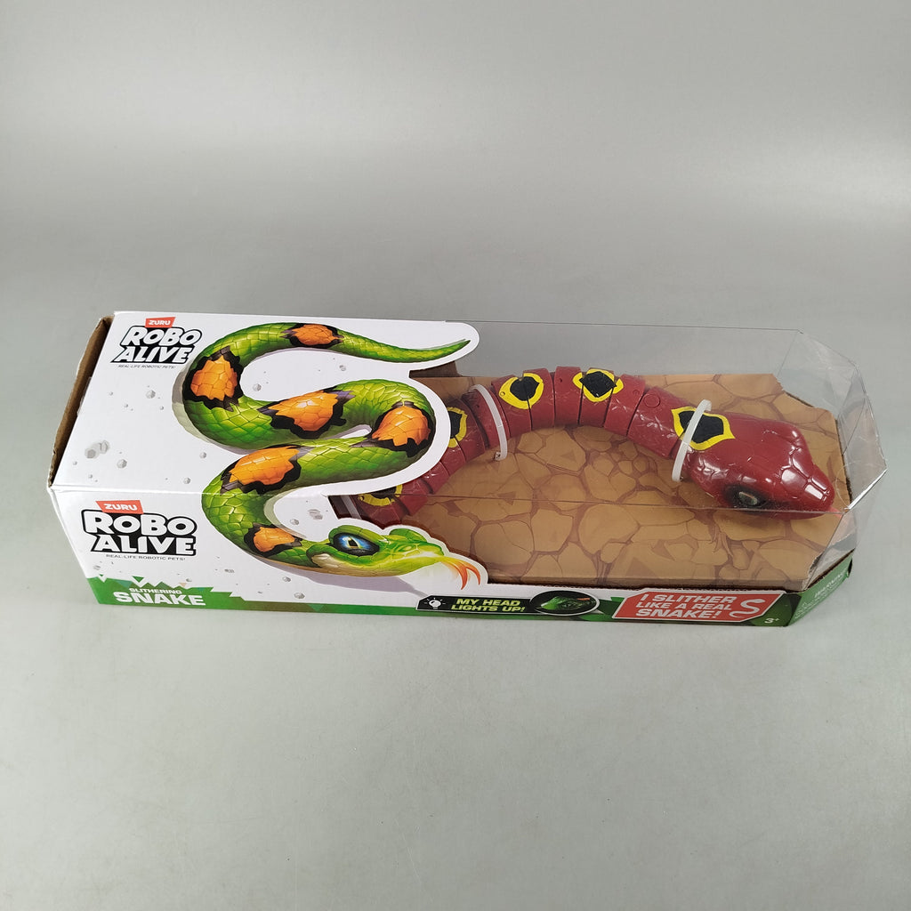 Hol dir die Slithering Snake von ZURU und bring Bewegung ins Kinderzimmer! Diese robotische Schlange schlängelt sich wie ein echtes Tier über den Boden, während der Kopf mit Lichtfunktion für zusätzlichen Spielspaß sorgt. Enthalten ist eine rote, segmentierte Roboterschlange, die batteriebetrieben ist (Batterien nicht enthalten). Gib diesem Spielzeug ein neues Zuhause und schenke ihm ein zweites Leben. Empfohlen für Kinder ab 3 Jahren gemäß GPSR-Hinweis.