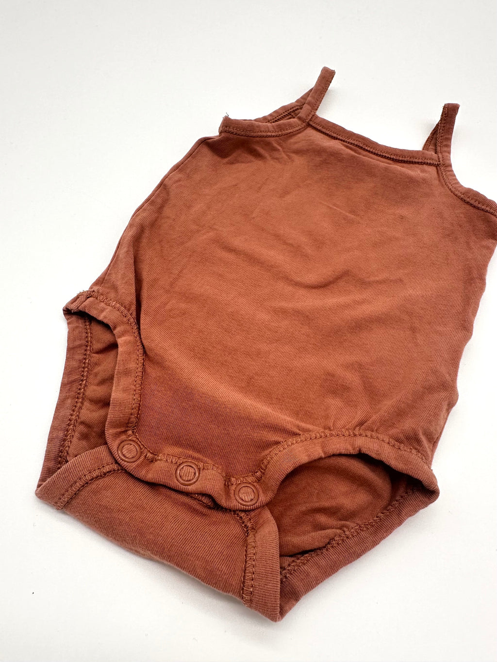 Ein schlichter und dennoch moderner Body von H&M, perfekt für warme Tage! Durch die feinen Spaghettiträger wirkt er besonders luftig und eignet sich ideal als Sommerbasic oder zum Unterziehen. Die schöne Rostfarbe verleiht dem Body einen trendigen Look, der sich vielseitig kombinieren lässt.