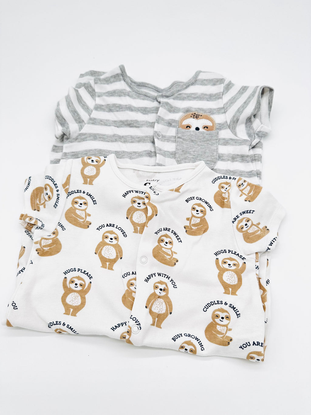 C&A Baby Strampler, Baby Set Größe 74, Baby Strampler Baumwolle, Baby Sommer Strampler, Baby Einteiler kurzarm, Baby Faultier Motiv, Secondhand Babykleidung, Baby Erstausstattung, Unisex Baby Kleidung