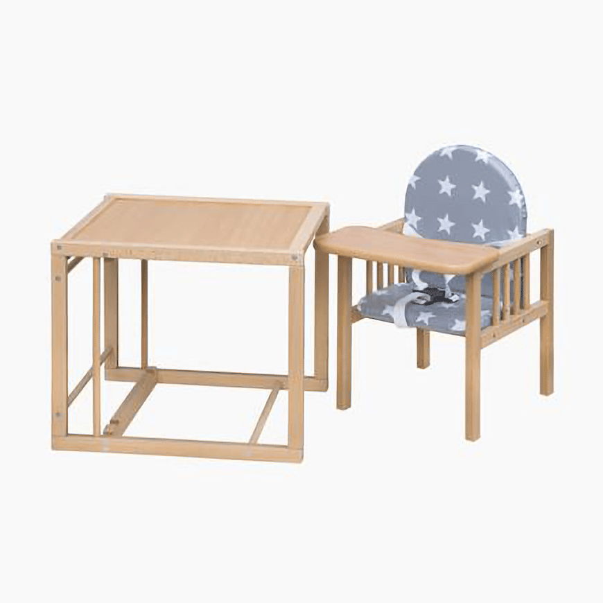 Der Hochstuhl Viktoria von Amal II ist ein echtes Allround-Talent. Du kannst den Kombihochstuhl nicht nur als Hochstuhl nutzen sondern auch als Stuhl und Tisch. So kann dein Kind, auch wenn es schon selsbständig sitzen kann, von diesem Stuhl profitieren. Die Sitz- und Rückenlehne ist weich gepolstert. Ein 3-Punkt-Gurt sorgt für die nötige Sicherheit.