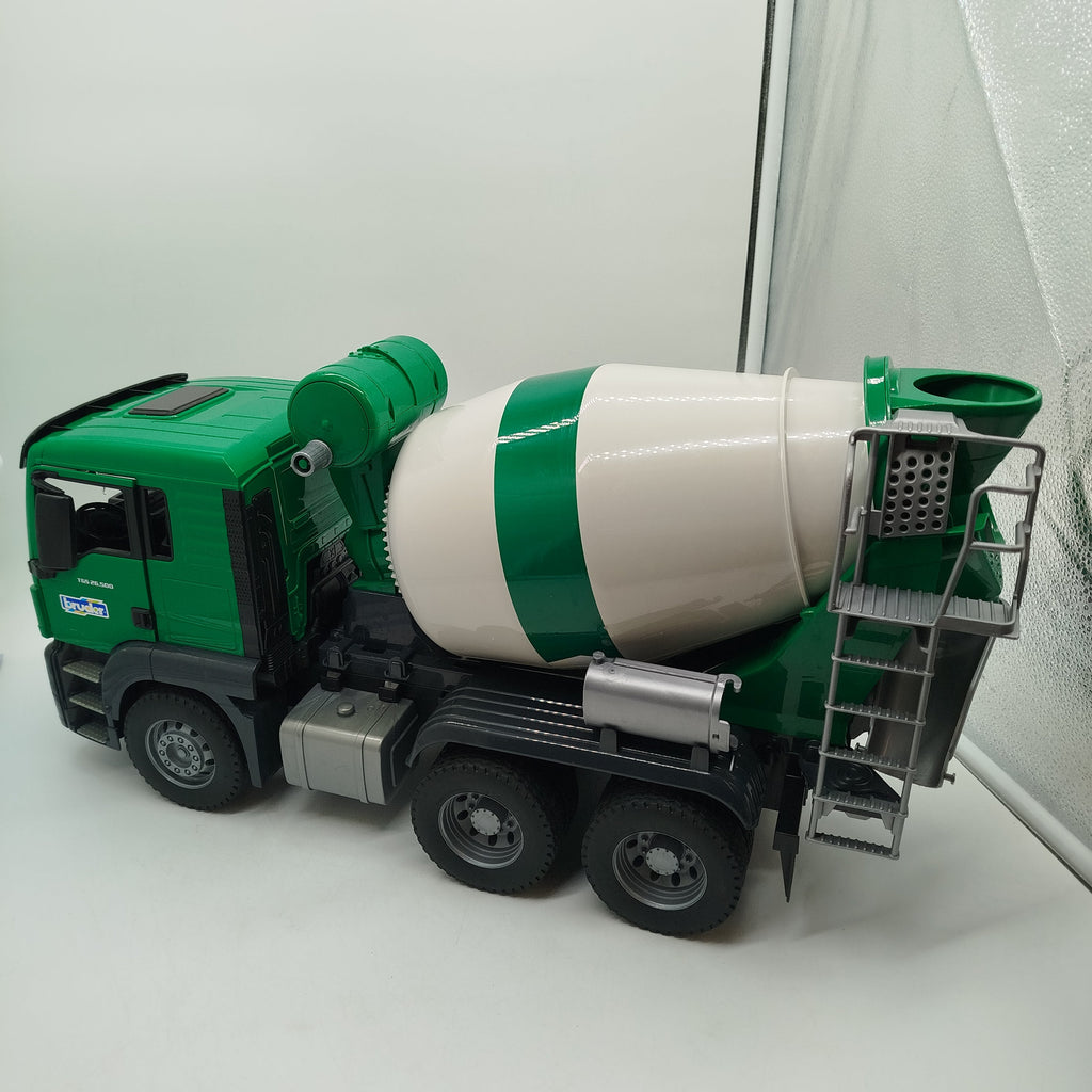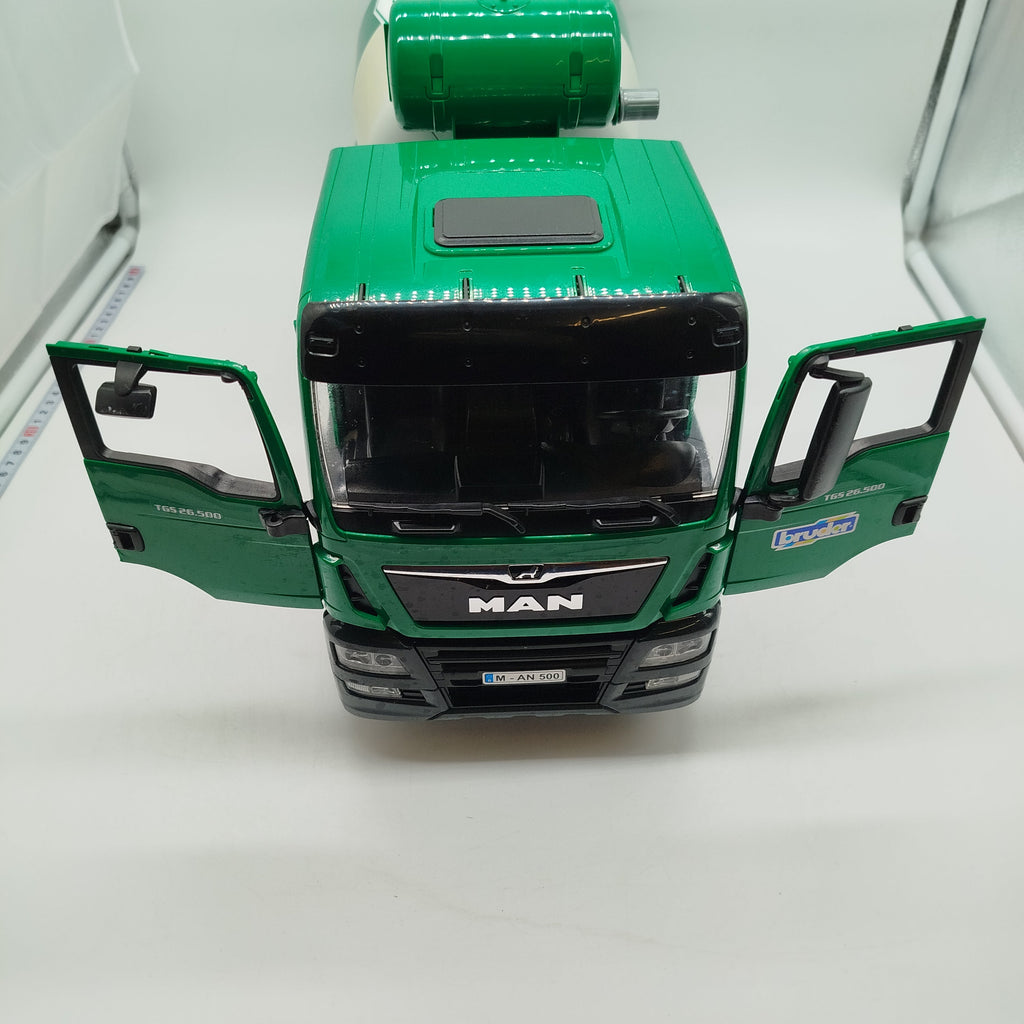 Hol dir das Bruder TGS Betonmisch-LKW rapid mix und bring echtes Baustellen-Feeling ins Kinderzimmer! Das detailreiche Spielfahrzeug zeigt einen Betonmischer auf TGS-Basis mit markanter grün-weißer Farbgebung und beweglichen Funktionen wie öffnenden Kabinentüren. Der Mischer ist für fantasievolle Rollenspiele rund um Bau und Transport gedacht und kommt ohne Figuren oder weiteres Zubehör. Gib diesem robusten Spielzeug ein neues Zuhause und schenk ihm ein zweites Leben. Geeignet für Kinder ab 3 Jahren gemäß europäischer GPSR-Richtlinien.
