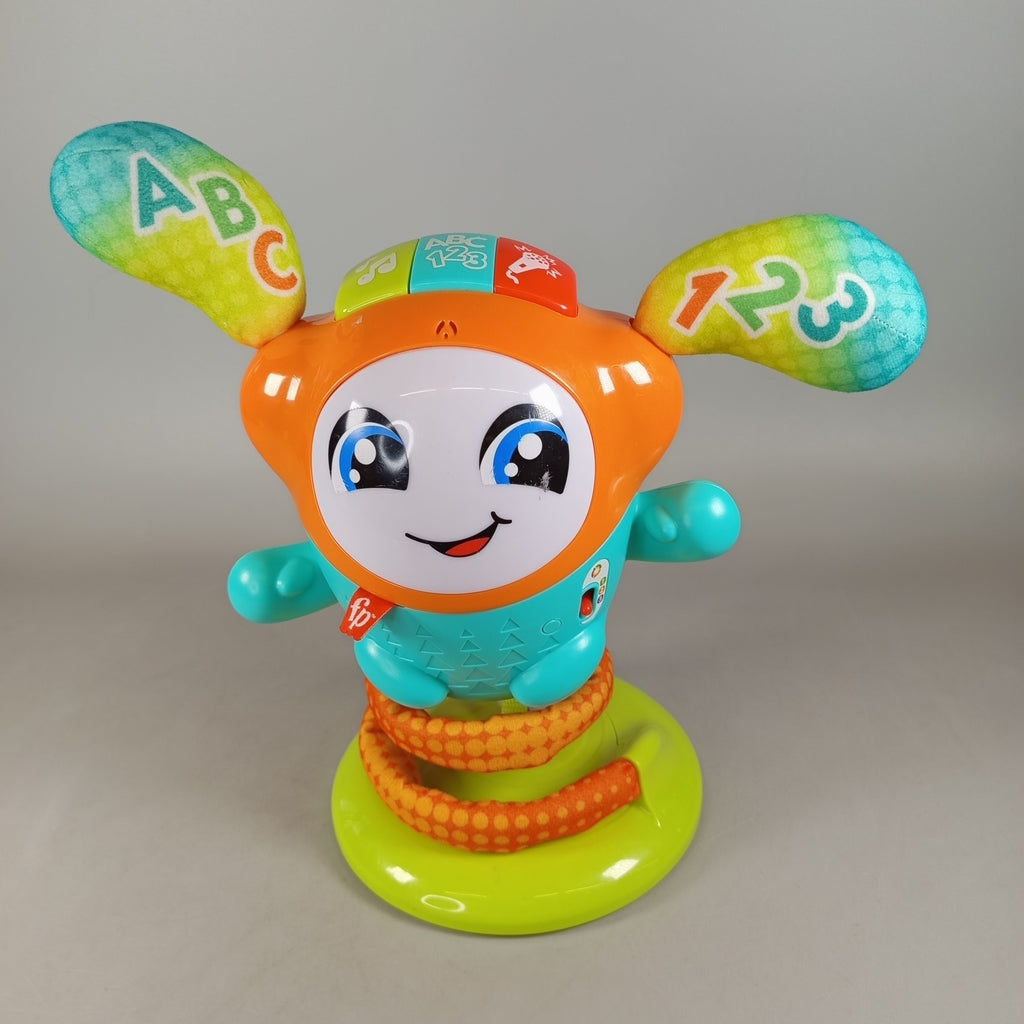 Hol dir das Fisher-Price DJ Hüpfi Lernspielzeug und bring Bewegung und Musik ins Kinderzimmer! Dieses interaktive Babyspielzeug mit federndem Standfuß reagiert mit Licht und Sound auf Drücken und Hüpfen und fördert spielerisch Zahlen, Buchstaben, Formen und Musikverständnis. Die bunten Elemente und weichen Ohren laden zum Entdecken ein und sorgen für abwechslungsreichen Spielspaß. Gib diesem Spielzeug ein neues Zuhause und schenke ihm ein zweites Leben. Enthalten ist ein elektronisches Aktivitätsspielzeug für Babys und Kleinkinder.