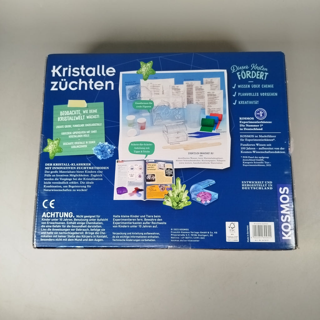 Hol dir das KOSMOS Experimentierset Kristalle züchten und tauche in spannende Chemie-Experimente ein. Mit diesem Wissenschaftsset kannst du eigene Kristalle wachsen lassen und einfache Versuche durchführen, unterstützt durch eine verständliche Anleitung und passendes Zubehör wie Behälter und eine kleine Schatztruhe. Das Set richtet sich an neugierige Kids ab 10 Jahren und vermittelt Grundlagen rund um Kristallbildung. Gib dem Spielzeug ein neues Zuhause und schenke ihm eine zweite Chance. Sicherheitshinweis gemäß GPSR: Enthält Kleinteile, nicht für Kinder unter 3 Jahren geeignet.