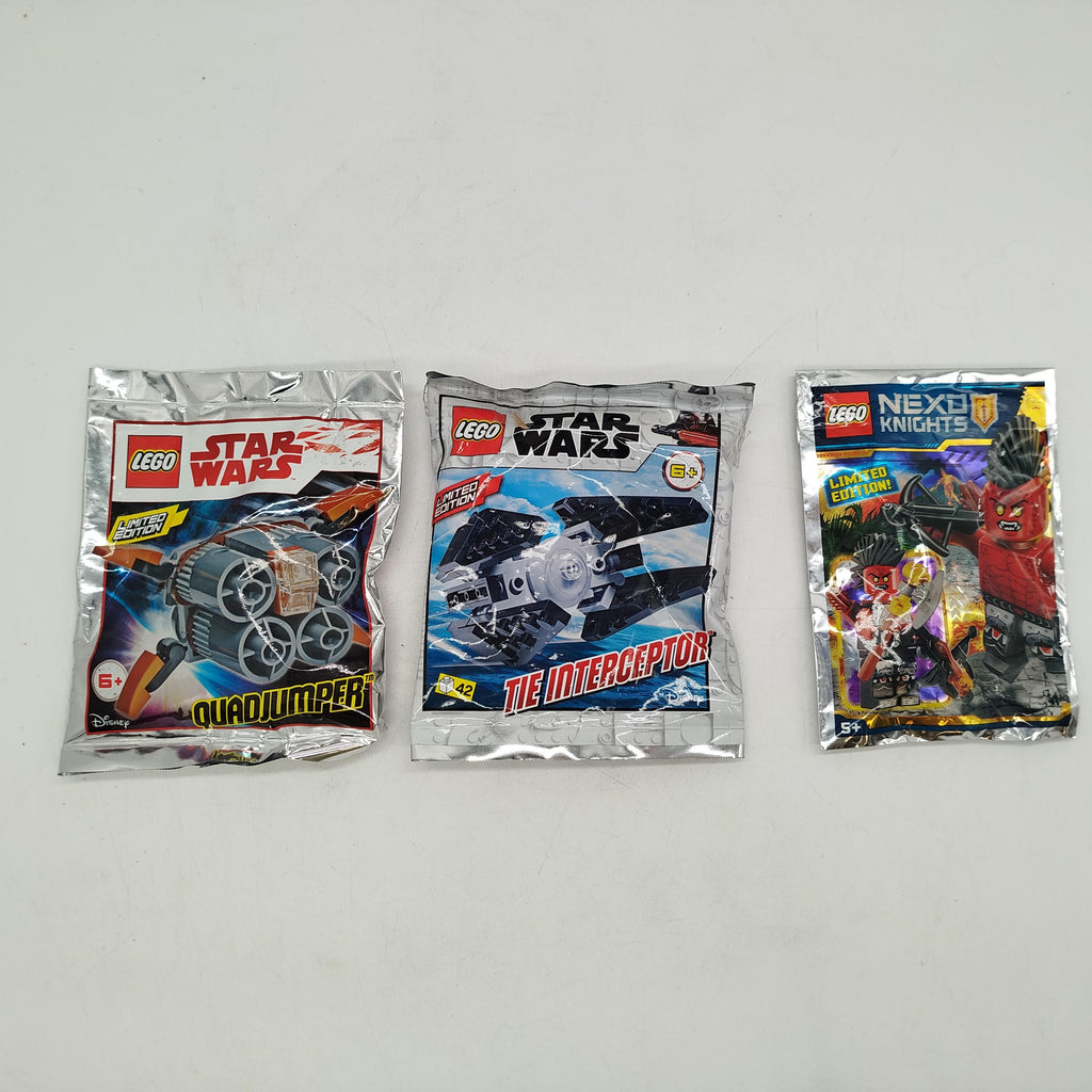 Hol dir das exklusive LEGO Polybag-Set mit drei limitierten Editionen aus den Reihen Star Wars und Nexo Knights. Enthalten sind der Quadjumper, The Interceptor (Ausgabe 142) und King’s Guard, alle originalverschweißt in OVP. Ideal für Sammler und LEGO-Fans. Das Set befindet sich in neuem, unbenutztem Zustand. Sicherheitshinweis: Nicht für Kinder unter 3 Jahren geeignet, da Kleinteile verschluckt werden können.
