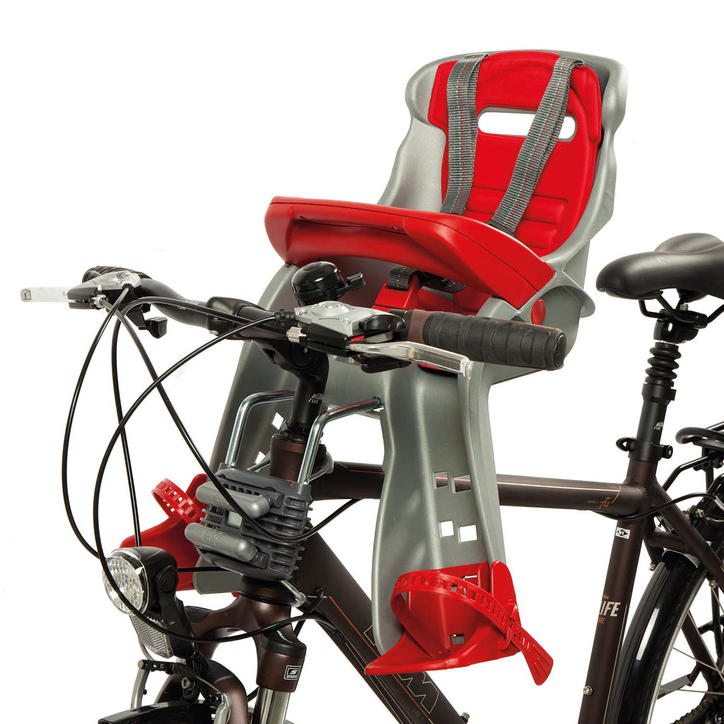 Produktbeschreibung Der Lenker-Fahrradsitz "Orion" ist ab circa" 8 Monaten ein idealer Begleiter für die ersten Spazierfahrten mit dem Fahrrad. Die Eltern können die Fahrt genießen, denn sie haben ihr Kind stets im Auge. Das Kind wird dank dem Frontbügel und den Sicherheitsgurten optimal geschützt. Montiert werden kann der Orion ganz einfach am Steuerrohr des Fahrrads, dessen Durchmesser zwischen 32 und 52mm sein kann. Das Befestigungssystem (Rahmenbefestigung und Trägerarm) ist natürlich im Lieferumfang enthalten - mit ihm kann der Fahhradsitz auf nahezu allen gängigen Arten von Rahmen, auch denen von E-Bikes, angebracht werden. Das Stützsystem des Orion dämpft Vibrationen, die durch Unebenheiten der Straße verursacht werden und sorgt somit für eine komfortable Fahrt. Der Frontbügel des Sitzes passt sich der Größe des Kindes an: So kann er in den ersten Monaten des Kindes (ca. 7-10kg) verwendet werden, bei größeren Kindern aber geöffnet und entfernt werden. Das Maximalgewicht, bis zu dem der Orion verwendet werden kann, beträgt dabei 15kg. Höhenverstellbare Fußstützen (3 Positionen) und ein in der Länge verstellbarer 3-Punkt-Gurt garantieren sowohl Sicherheit als auch Komfort. Sitz- und Rückenpolsterung sind thermogeformt und wasserabweisend und wetterfest. Diese Polsterung kann auch handgewaschen werden (mit neutraler Seife und lauwarmem Wasser). Für noch angenehmeres Sitzen sorgt eine Belüftungsöffnung im Sitz. Auf die Sicherheit des Orion ist Verlass: Alle Inhaltsstoffe sind absolut unschädlich und giftfrei. Der Sitz ist TÜV-GS-geprüft und -zertifiziert und erfüllt alle Sicherheitsanforderungen der Norm EN 14344 für Fahrradsitze. Entwickelt, entworfen und produziert wird in Italien. Set enthält: