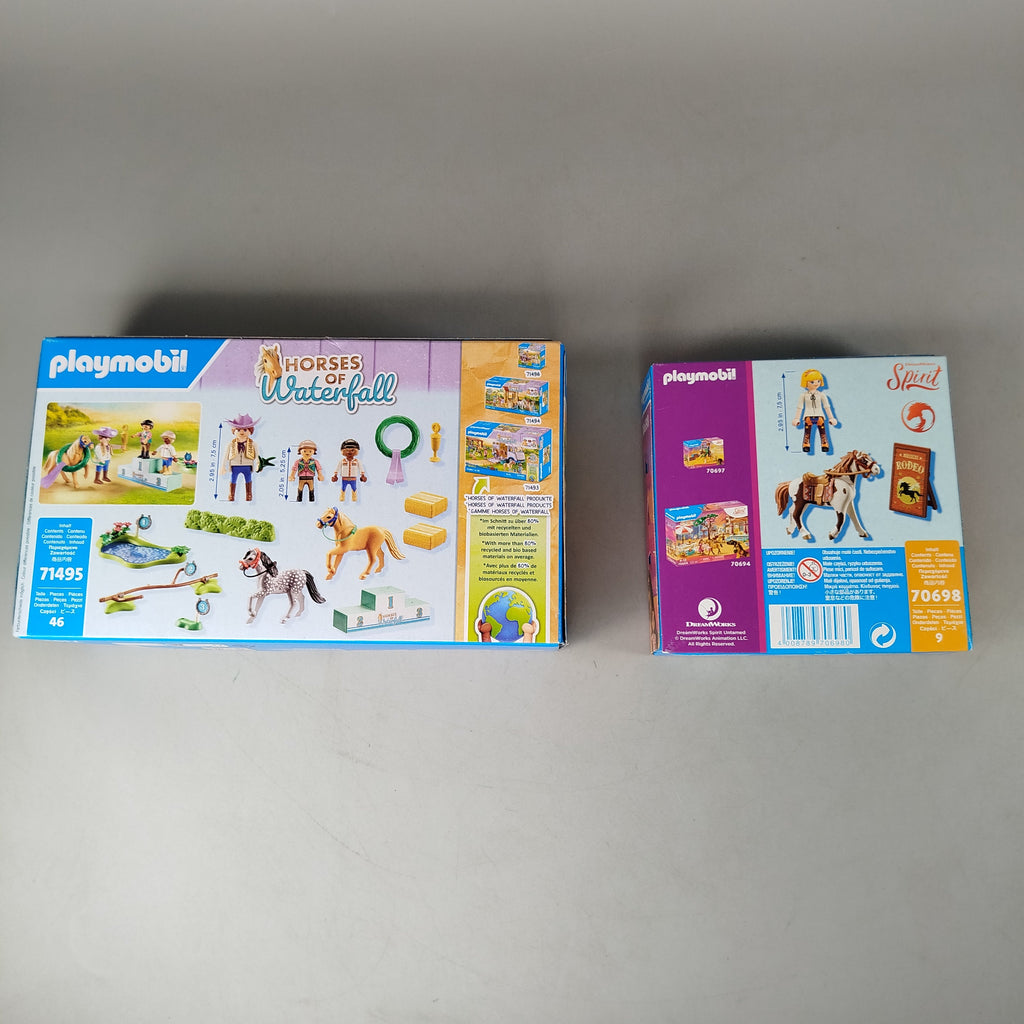 Hol dir das Playmobil Pferdeset mit den beliebten Sets Horses of Waterfall 71495 und Spirit Untamed 70698. Beide Sets sind vollständig, mit insgesamt 55 Teilen und enthalten Figuren sowie Zubehör rund um das Thema Pferde. Ideal für kreative Abenteuer im Kinderzimmer. Die Sets befinden sich in neuwertigem Zustand in Originalverpackung mit Anleitung. Gib diesem Spielzeug ein neues Zuhause und fördere fantasievolles Spielen!