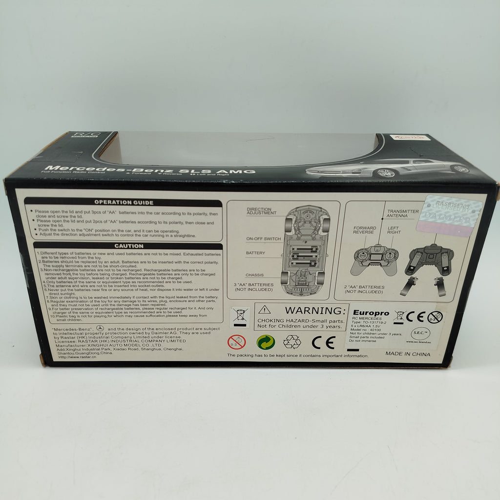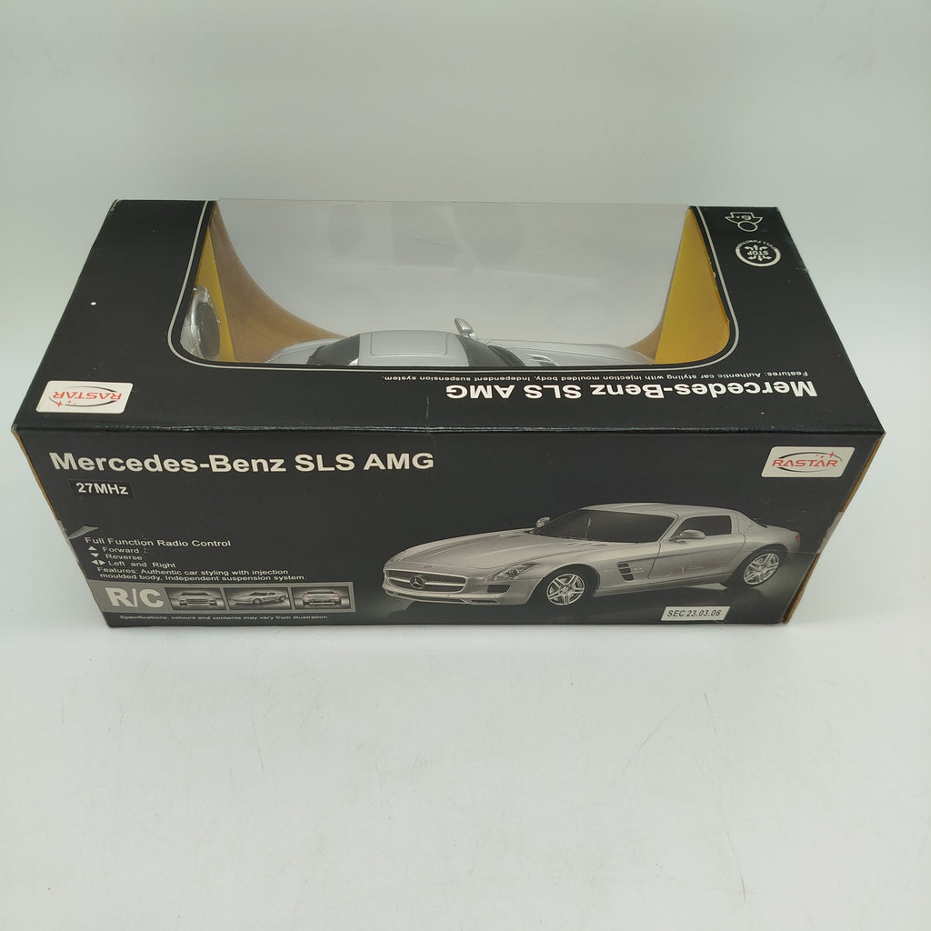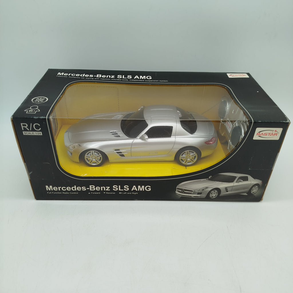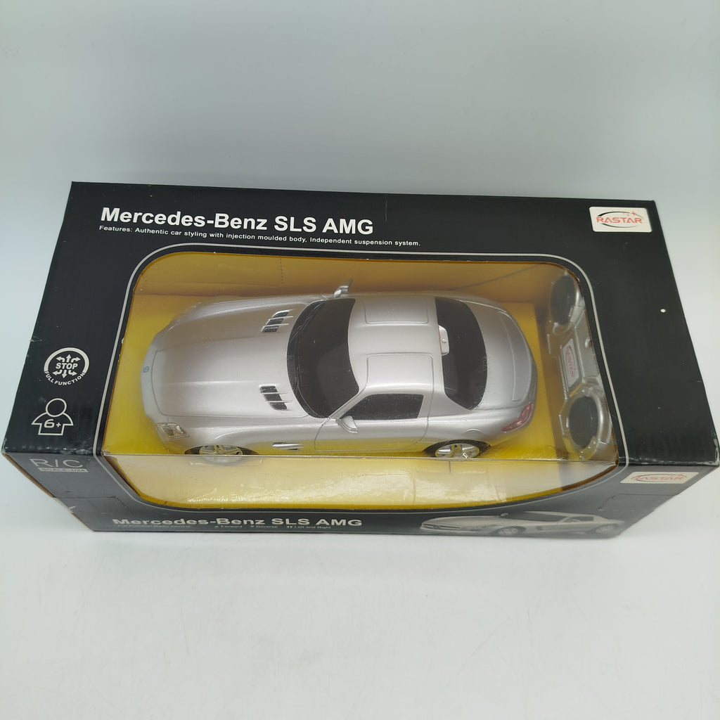 Hol dir das Rastar SLS AMG RC Modellauto im Maßstab 1:24 und bring Rennspaß ins Kinderzimmer! Das ferngesteuerte Auto kommt im authentischen SLS-AMG-Design mit Full-Function-Steuerung, 27 MHz Funktechnik und unabhängig gefederter Aufhängung. Gesteuert wird es per passendem Sender, der Fahrspaß für Kinder ab 6 Jahren bietet. Gib diesem Spielzeug ein neues Zuhause und schenke ihm eine zweite Runde auf der Rennstrecke. Batterien sind nicht enthalten. Sicherheitshinweis: Enthält Kleinteile, nicht geeignet für Kinder unter 3 Jahren. Erstickungsgefahr!