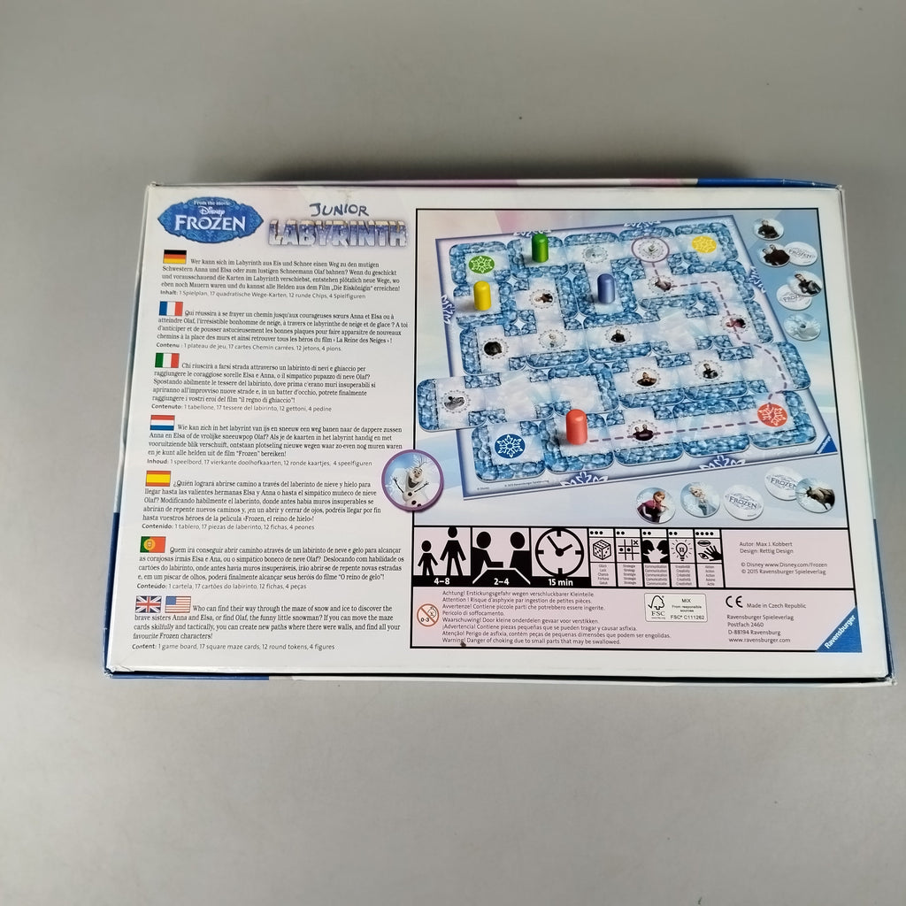 Hol dir das Junior Labyrinth Disney Frozen von Ravensburger und tauche mit Anna, Elsa und ihren Freunden in ein spannendes Labyrinth-Abenteuer ein. Dieses Brettspiel für Kinder ab 4 Jahren dreht sich ums geschickte Verschieben von Wegen, um die gesuchten Motive zu erreichen, und sorgt für kurze, abwechslungsreiche Spielrunden. Enthalten sind Spielbrett, Labyrinth-Karten, Spielfiguren und Spielmarker. Gib diesem Spielzeug ein neues Zuhause und schenke ihm ein zweites Leben. Sicherheitshinweis gemäß GPSR: Enthält Kleinteile, nicht geeignet für Kinder unter 3 Jahren.