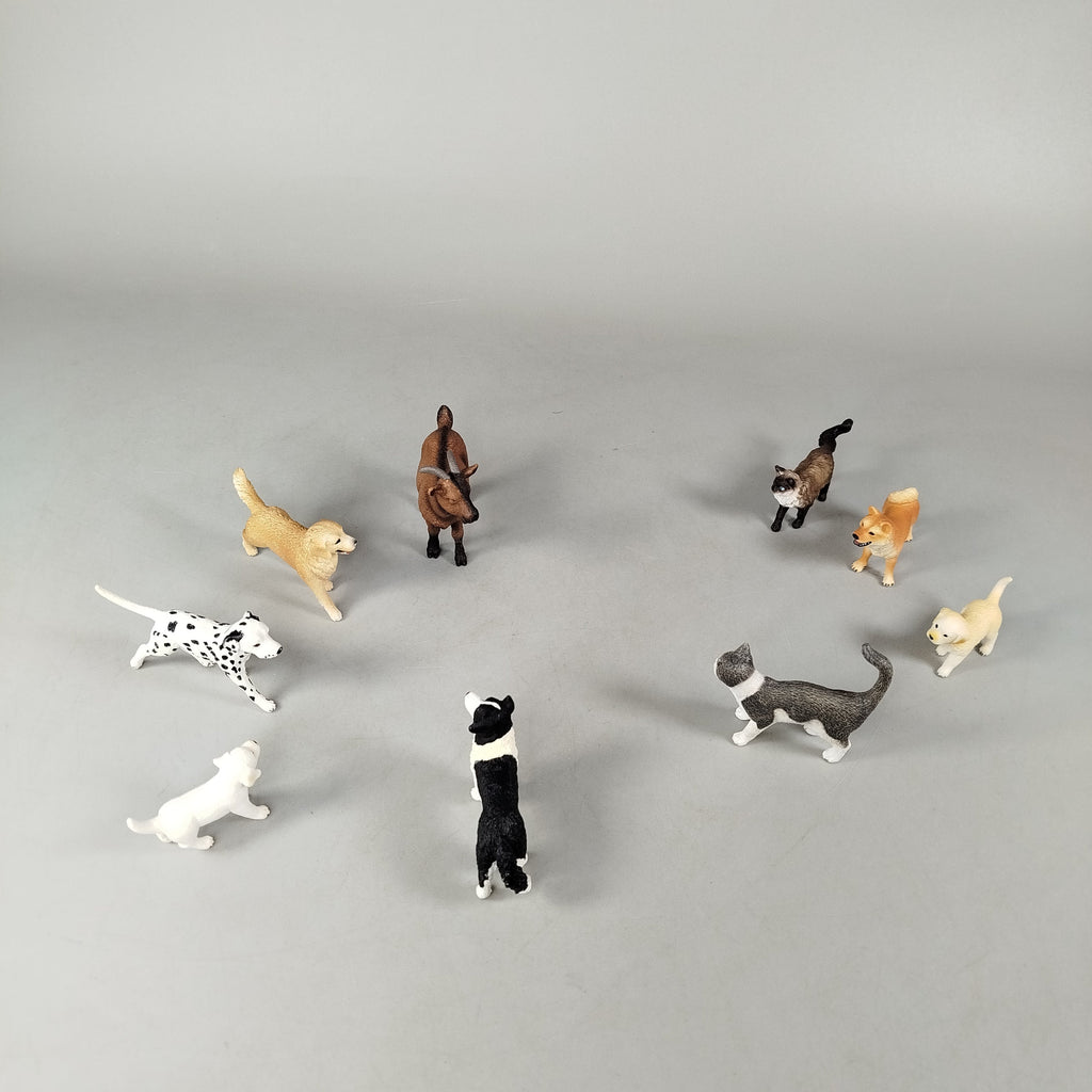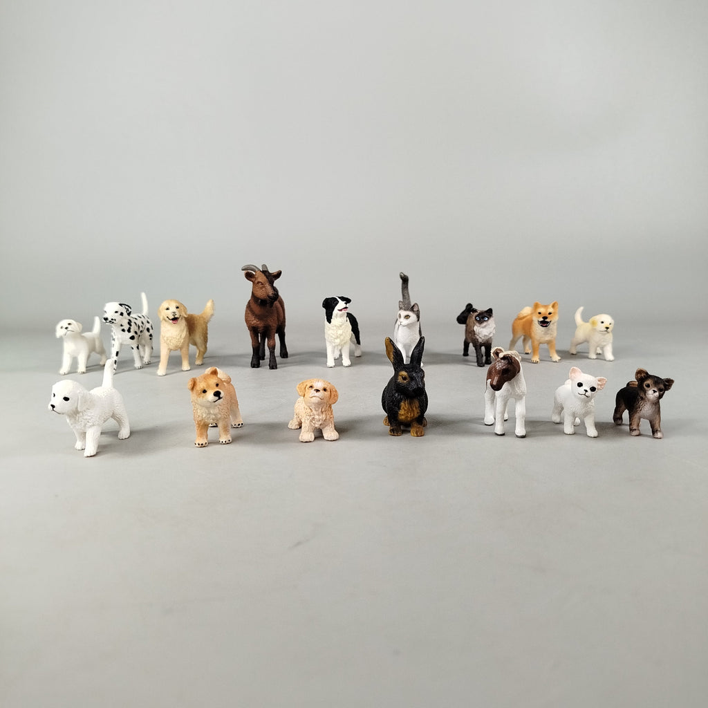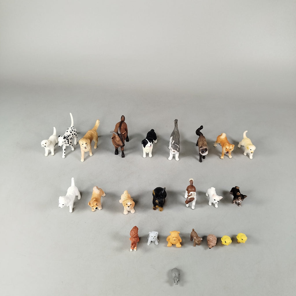 Hol dir das detailreiche Schleich Tierfiguren-Set mit 24 verschiedenen Tieren wie Hund, Katze, Ziege, Pferd, Kaninchen, Bär, Igel, Küken und Maus. Jede Figur ist liebevoll bemalt und eignet sich perfekt für fantasievolles Spielen oder Sammeln. Verpackung fehlt, die Figuren sind in einem sehr guten gebrauchten Zustand. Gib diesen Tieren ein neues Zuhause und fördere spielerisch Wissen über die Tierwelt. Hinweis: Nicht für Kinder unter 3 Jahren geeignet, da Kleinteile verschluckt werden können.