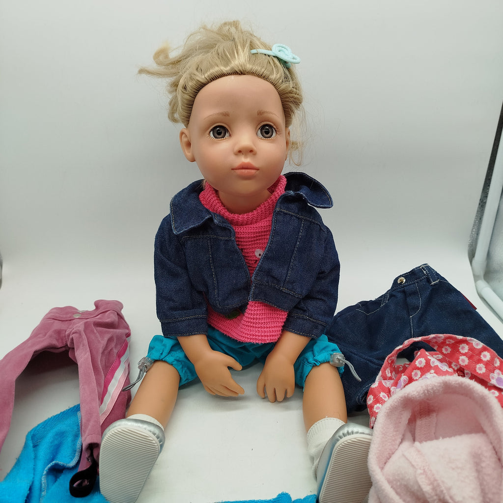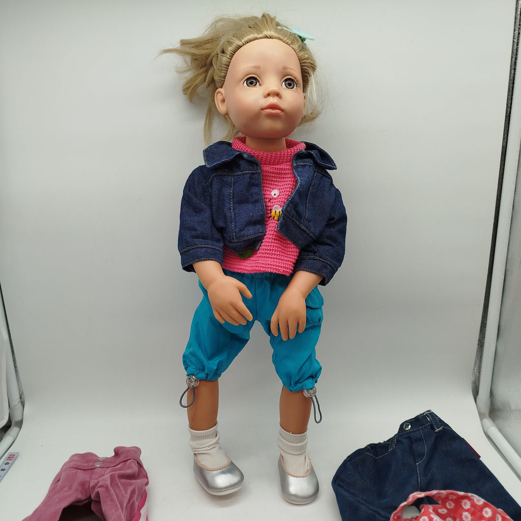 Hol dir diese Stehpuppe und bring fantasievolle Rollenspiele ins Kinderzimmer! Die ca. 43–45 cm große Puppe mit blonden Haaren und braunen Augen lädt zum An- und Umziehen ein und kommt mit passender Wechselkleidung für viele Spielideen. Ob Alltagsszenen oder kleine Abenteuer – hier steht kreatives Spielen im Mittelpunkt. Gib dem Spielzeug ein neues Zuhause und verlängere seinen Lebenszyklus. Geeignet für Kinder ab 3 Jahren. Hinweis nach GPSR: Enthält Kleinteile, nicht geeignet für Kinder unter 3 Jahren. Erstickungsgefahr!
