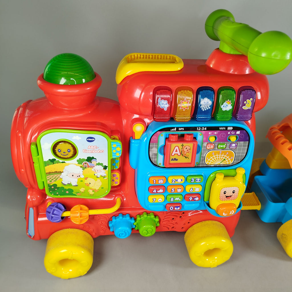 Hol dir die Vtech ABC-Eisenbahn und bring Bewegung und Lernspaß ins Kinderzimmer! Dieses elektronische Rutsch- und Mitfahrspielzeug kombiniert eine Lok mit Spielcenter und einen abnehmbaren Anhänger mit Sitz- und Stauraum. Tasten, Zahlenfeld, Uhr, Buchseiten, Telefonhörer und Bausteine fördern erstes Zählen, Buchstaben und Rollenspiel. Gib dem Spielzeug ein neues Zuhause und unterstütze nachhaltiges Spielen. Geeignet für kleine Entdecker im frühen Lernalter.