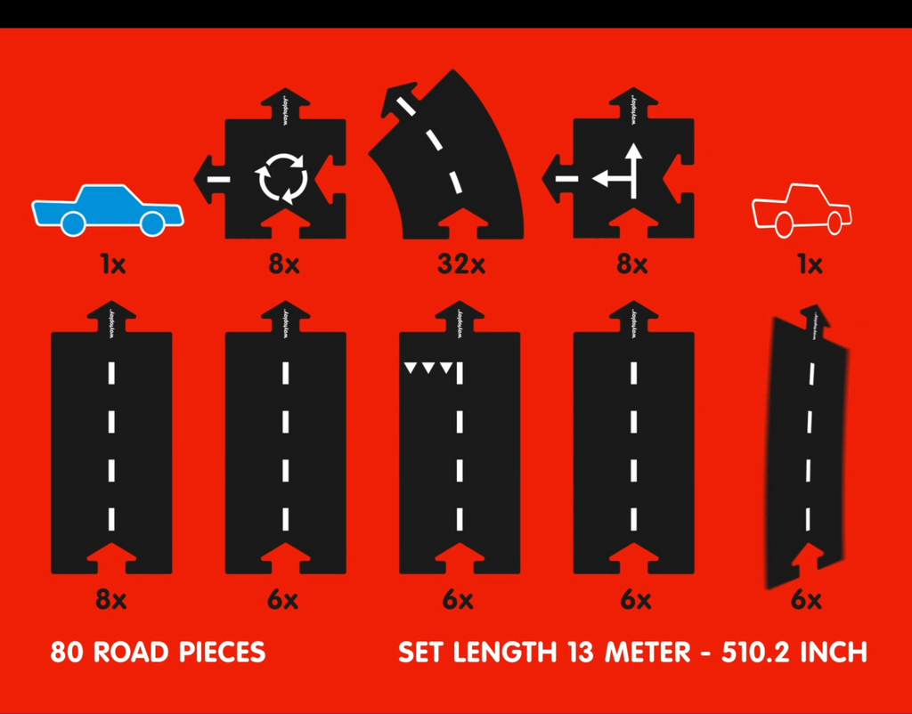 Ob im Kinderzimmer oder draußen auf der Terrasse: Das „Silk Road“-Set ist perfekt für kleine und große Baumeister*innen – und bietet jede Menge Raum für fantasievolles Spiel. Ideal für Gruppen, Schulen oder echte Auto-Fans.
