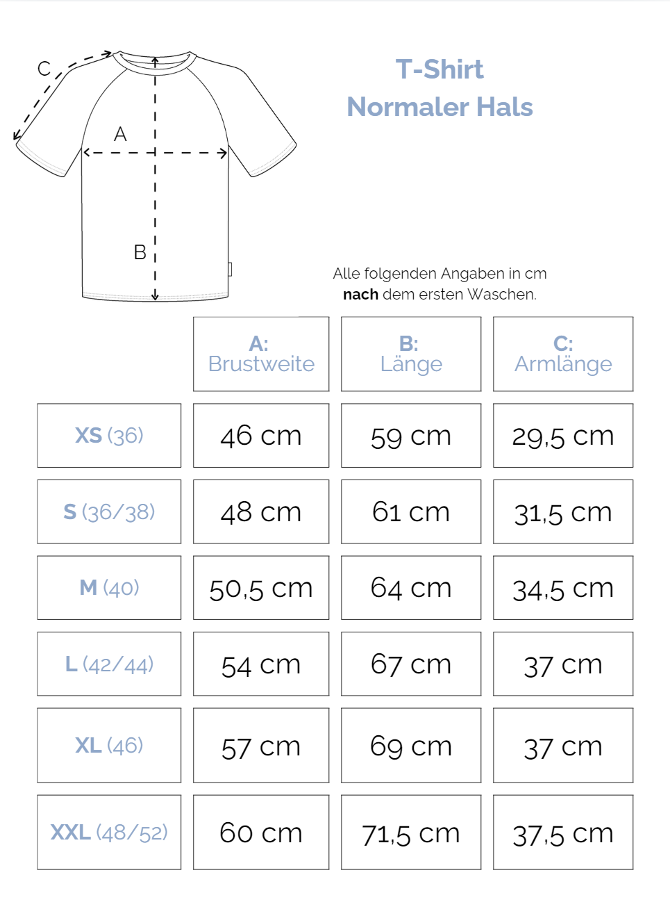 Das faire T-Shirt für Erwachsene ist ein Shirt aus hochwertiger Interlock Bio-Baumwolle. Dank unseres bewährten Raglanschnitts liegt der Stoff locker auf den Schultern auf und passt sich an jeden Körper an. Die T-Shirts sind zudem nicht tailliert, sondern gerade geschnitten. Dadurch sitzen sie schön luftig, ohne jedoch unförmig zu wirken.