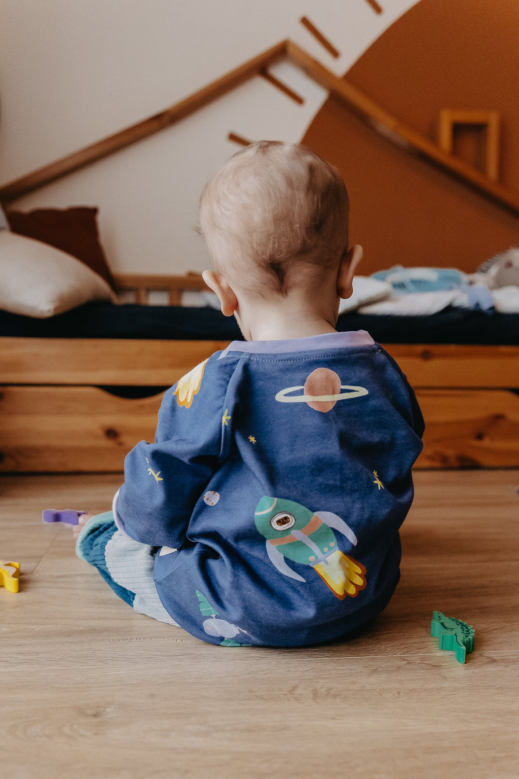 Der Alltagsbegleiter ist ein Oktopulli aus dünnerem Sweatstoff. Er lässt sich bequem das ganze Jahr über tragen. Ob an kalten Wintertagen drinnen, im Herbst unter einer Jacke oder an kühleren Sommertagen als Überziehpulli. Sein Schnitt ist so konzipiert, dass Kinder ihn bis zu vier Konfektionsgrößen lang tragen können. Wie unsere Oktopullis mitwachsen erklären wir dir in den Produktfotos.