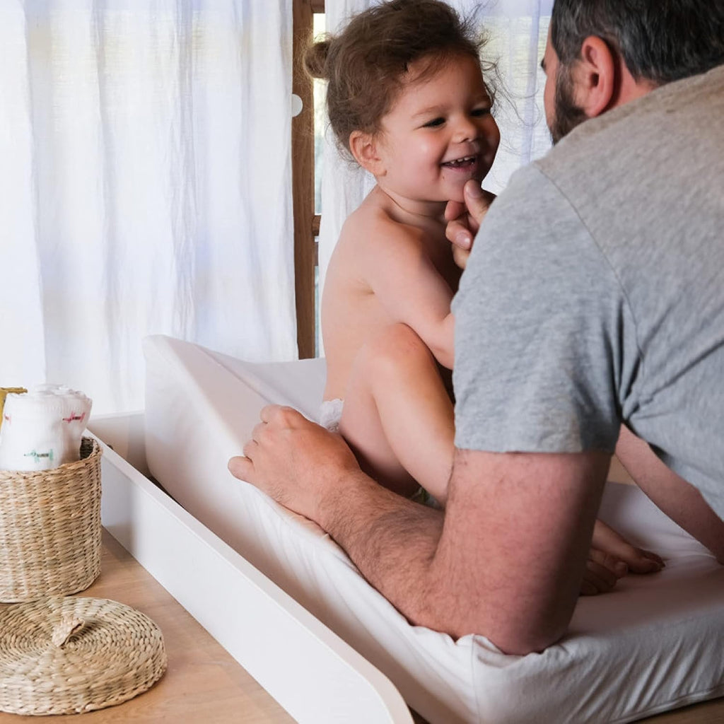 - BEGÜNSTIGT DIE KOMMUNIKATION: Geneigte Wickelauflage, die den Blickkontakt zwischen Eltern und Baby begünstigt - erleichterte Kommunikation, die Momente der Innigkeit fördert