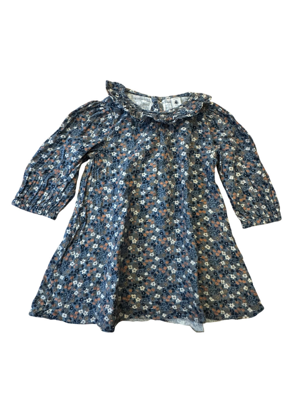 Kleid blaugrau mit Blümchen Gr.92 | Petit Bateau