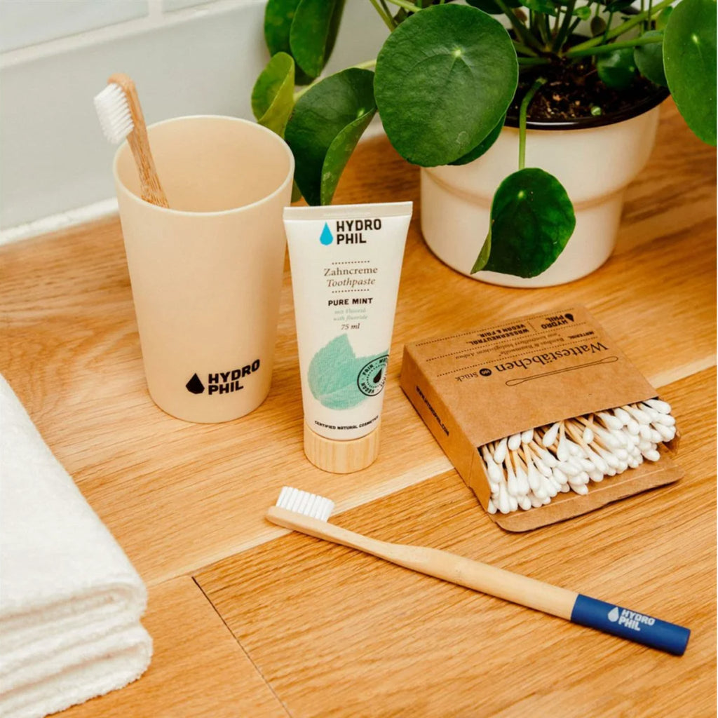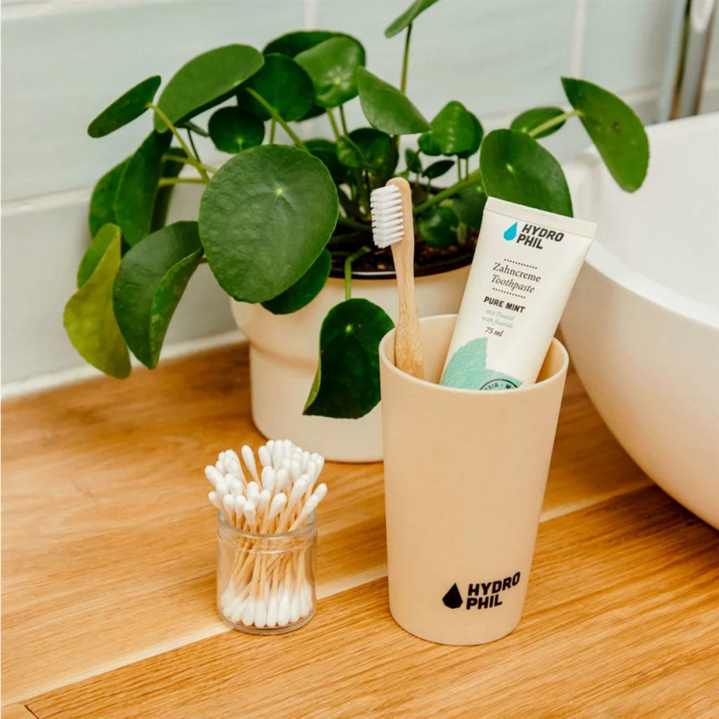 Der HYDROPHIL Zahnputzbecher ist eine hervorragende Ergänzung für Ihr nachhaltiges Badezimmer. Er besteht aus Arboblend®, einem neuartigen Biowerkstoff, der sowohl lebensmittelecht als auch BPA-frei ist. Arboblend® wird aus erneuerbaren Materialien wie Cellulose, natürlichen Wachsen und Lignin hergestellt. Der Becher wird in der Nähe von Hamburg produziert. Er ist nicht nur ein robuster und lebensmittelechter Partner im Badezimmer, sondern kann auch beim Camping oder in der Küche als Trinkbecher verwendet werden.