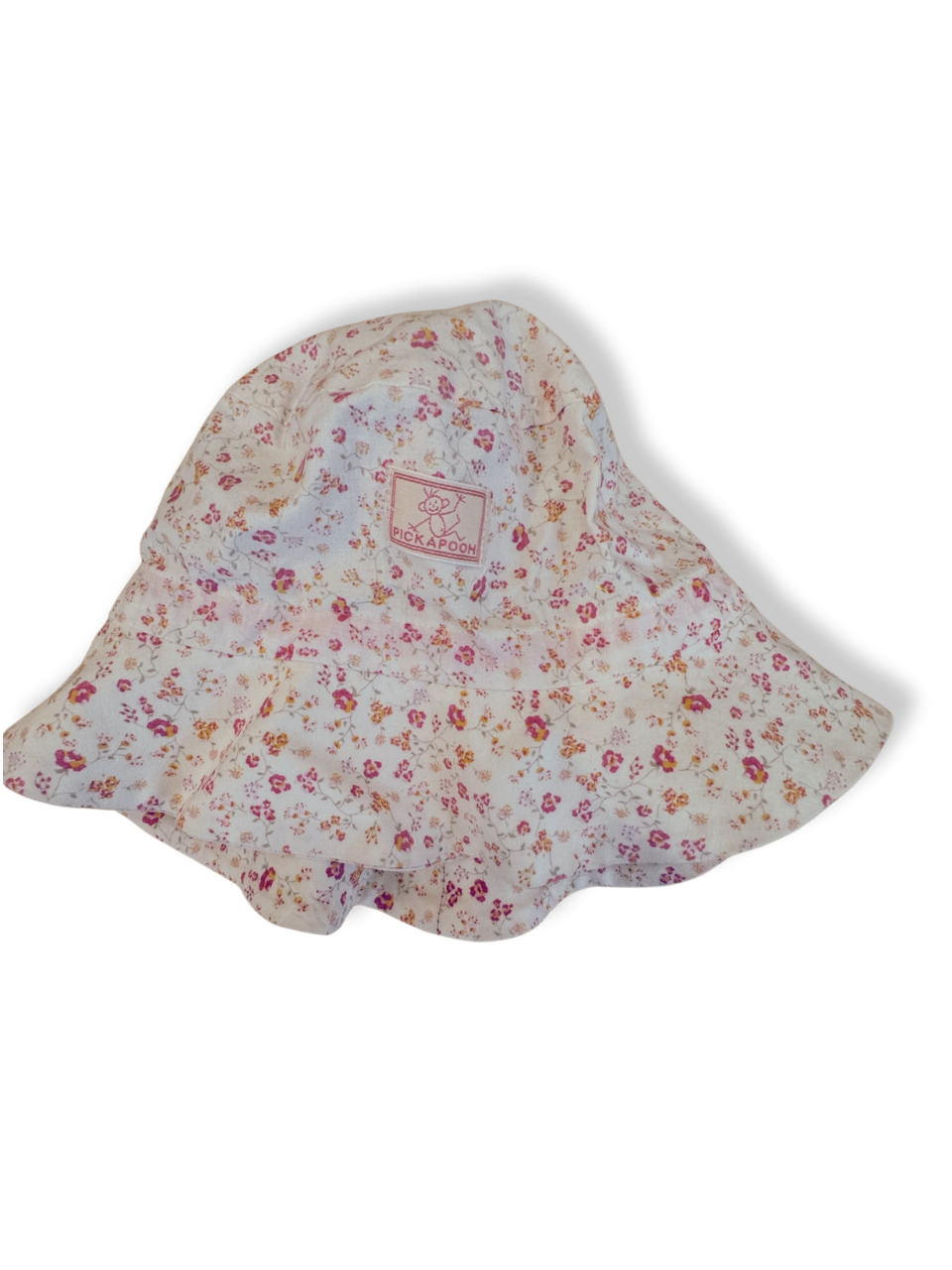 Diese hübsche Sonnehut von Pickapooh vereint Funktion und Stil. Der zarte Blumenprint macht sie zum charmanten Begleiter für den Frühling und Sommer. Ideal geeignet, um das Köpfchen vor Sonne zu schützen. Perfekt für kleine Köpfe, die stylisch und geschützt unterwegs sein wollen.