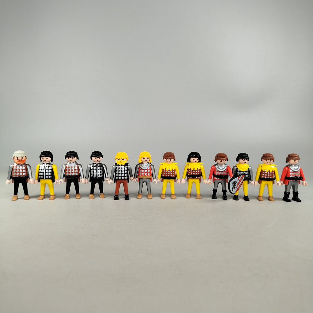 Hol dir das Playmobil Figuren-Set und bring mittelalterliche Abenteuer ins Kinderzimmer! Dieses Set enthält 12 detailreiche Figuren aus dem Mittelalter- und Fantasy-Thema, darunter Ritter und Charaktere mit Zubehör wie einem Schild. Die Figuren bestehen aus robustem Kunststoff und sind ca. 7 cm groß. Verpackung ist nicht vorhanden. Das Set befindet sich in einem guten gebrauchten Zustand mit leichten Gebrauchsspuren. Die Vollständigkeit konnte nicht überprüft werden. Hinweis: Enthält Kleinteile, nicht geeignet für Kinder unter 3 Jahren. Gib diesen Spielzeugen ein neues Zuhause und verlängere ihre Lebensdauer!