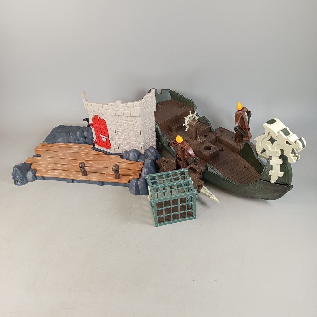 Hol dir das Playmobil Figuren- und Schiff-Set mit fünf Charakteren und viel Zubehör für aufregende Abenteuer auf See! Enthalten sind ein Schiff mit Drachenkopf, ein beweglicher Käfig, eine Mauer mit roter Tür, ein Floß sowie Waffen, Laterne, Trommel und Mast mit Segel. Das Spielzeug zeigt leichte Gebrauchsspuren und die Vollständigkeit konnte nicht überprüft werden. Gib diesem detailreichen Set ein neues Zuhause und spiele fantasievolle Geschichten nach. Hinweis: Enthält Kleinteile, nicht geeignet für Kinder unter 3 Jahren.