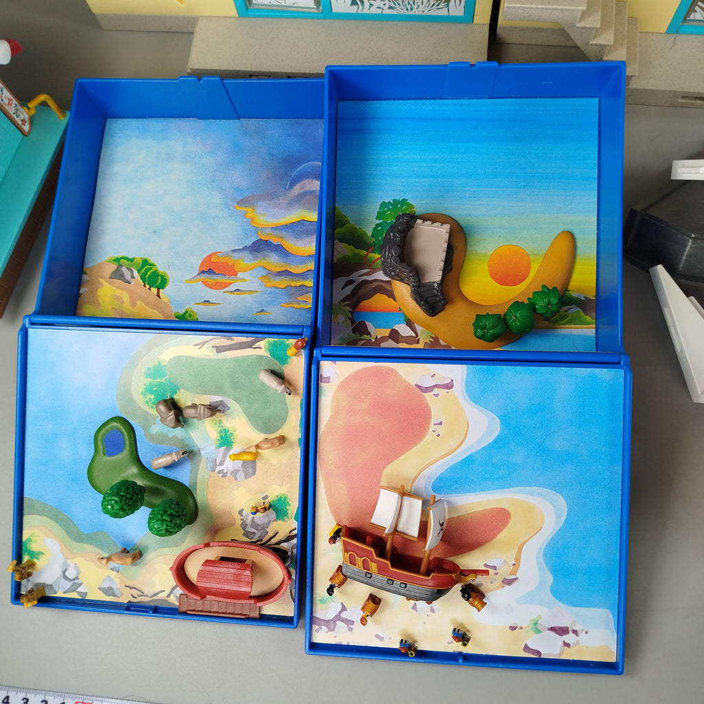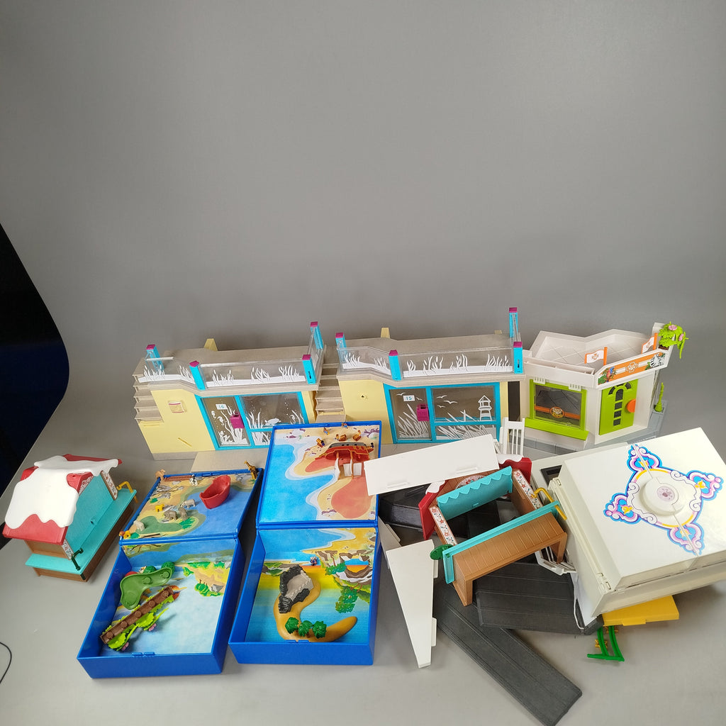 Hol dir die bunte Playmobil Spielwelt mit modularen Gebäuden, Sushi-Shop, Piratenschiff und winterlichen Marktständen. Ideal für fantasievolles Spielen und kreative Geschichten. Kein Originalkarton vorhanden, aber alle Teile in gutem gebrauchten Zustand. Gib diesem Spielzeug ein neues Zuhause und entdecke unendliche Spielmöglichkeiten. Die Vollständigkeit konnte nicht überprüft werden. Achtung: Enthält Kleinteile, nicht geeignet für Kinder unter 3 Jahren.