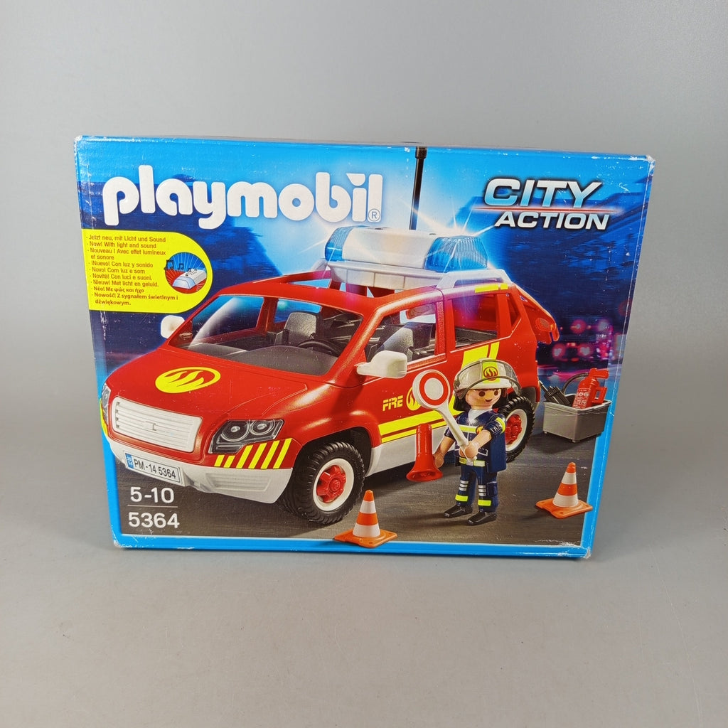 Hol dir das Playmobil City Action Feuerwehrfahrzeug 5364 und erlebe spannende Rettungseinsätze. Das Set enthält 38 Teile, darunter eine Feuerwehrfigur (7,5 cm), ein Fahrzeug mit Licht- und Soundmodul, zwei Leitkegel, Feuerlöscher, Funkgerät, Stoppschild und weiteres Zubehör. Die Verpackung ist original, leichte Gebrauchsspuren vorhanden. Anleitung fehlt, Vollständigkeit konnte nicht geprüft werden. Das Spielzeug ist in gutem gebrauchten Zustand. Hinweis: Batterie (1×AAA) nicht enthalten. Achtung! Nicht geeignet für Kinder unter 3 Jahren – Erstickungsgefahr durch Kleinteile.