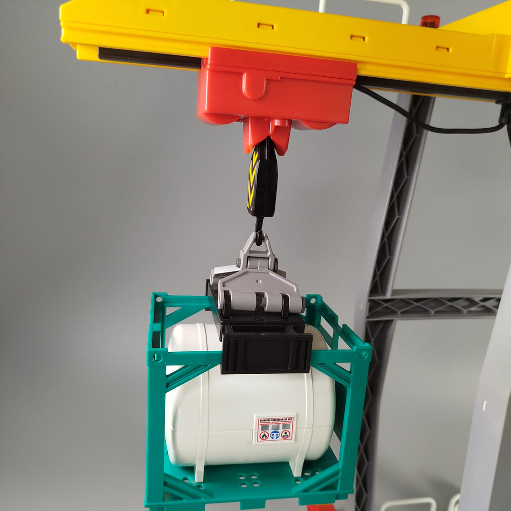 Hol dir das beeindruckende Playmobil Kran-Set (70770) und bring realistische Hafenabenteuer ins Kinderzimmer! Dieses Set enthält eine große Kranstruktur mit einer roten Steuerkabine, in der eine kranführende Person ihre Arbeit verrichtet. Der Kran kann mit einem elektronischen Seil- und Hakensystem Lasten heben und senken, ideal für kreative Rollenspiele. Gib diesem Spielzeug ein neues Zuhause und erleben Sie strahlende Kinderaugen! Zu den weiteren Komponenten zählen eine Tankcontainer-Nachbildung sowie Barrieren und Plattformelemente. Hinweis: Enthält Kleinteile, nicht geeignet für Kinder unter 3 Jahren. Erstickungsgefahr! Anleitung und Originalverpackung sind nicht enthalten, zudem kann die Vollständigkeit dieses Sets nicht garantiert werden. Batterien sind im Lieferumfang nicht enthalten.