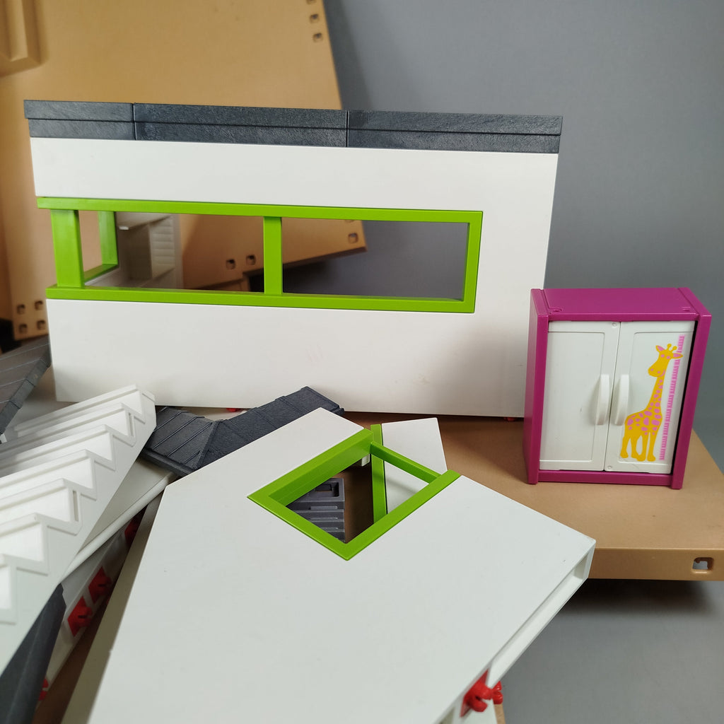 Hol dir das City Life Luxusvilla-Spielset von Playmobil und gestalte dein eigenes modernes Zuhause fürs Kinderzimmer. Das Spielzeug ist ein großes Hausbausystem mit Wandelementen, Dachteilen, Treppe und verschiedenen Möbeln für Küche, Wohn- und Schlafbereich. Enthalten sind unter anderem Bauteile für Räume sowie Möbel und kleine Deko-Elemente, Figuren sind nicht dabei. So bekommt das Spielzeug eine zweite Chance und lädt zu kreativem Aufbauen und Umgestalten ein. Hinweis gemäß GPSR: Enthält Kleinteile, nicht geeignet für Kinder unter 3 Jahren. Erstickungsgefahr.