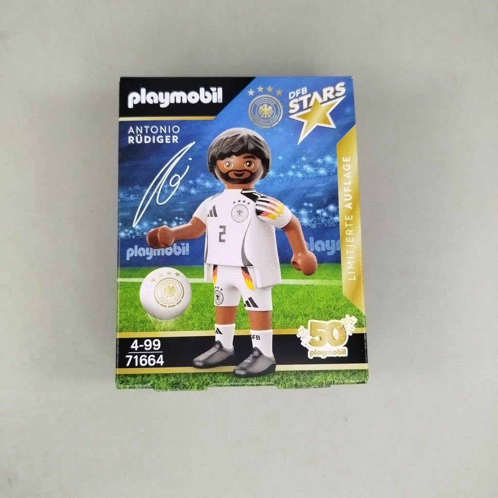 Hol dir die limitierte Playmobil DFB Stars Figur von Antonio Rüdiger und erweitere deine Fußball-Sammlung! Die detailreiche Figur trägt das Trikot mit der Nummer 2 und steht für echte Teamstärke in der Defensive. Offiziell lizenziertes DFB-Produkt und Teil der 16 Stars zum Sammeln. Die Figur ist ca. 7,5 cm groß und kommt in der originalen Verpackung mit Anleitung. Das Spielzeug befindet sich in neuem Zustand und ist vollständig. Hinweis: Enthält Kleinteile, nicht geeignet für Kinder unter 3 Jahren. Gib diesem besonderen Sammlerstück ein neues Zuhause!