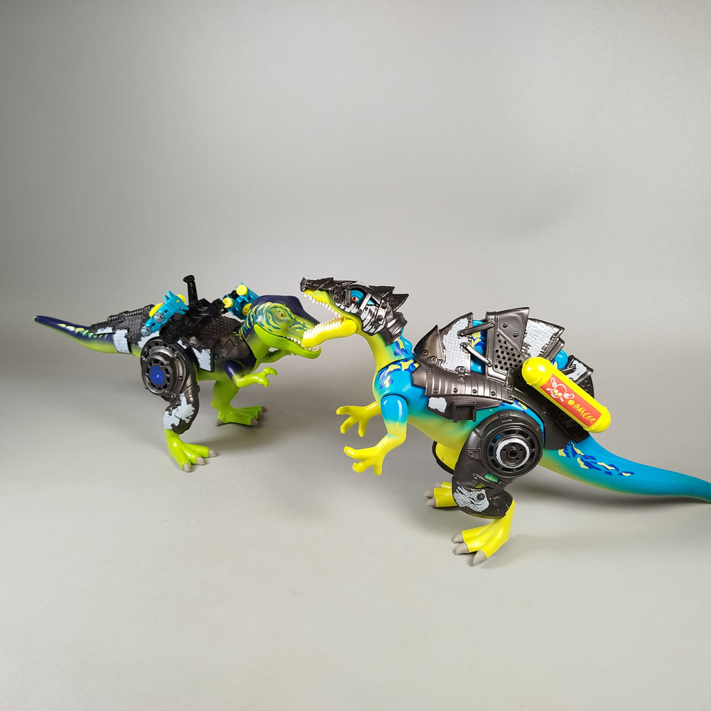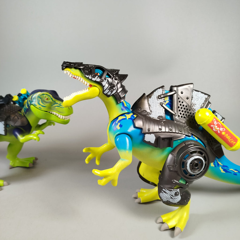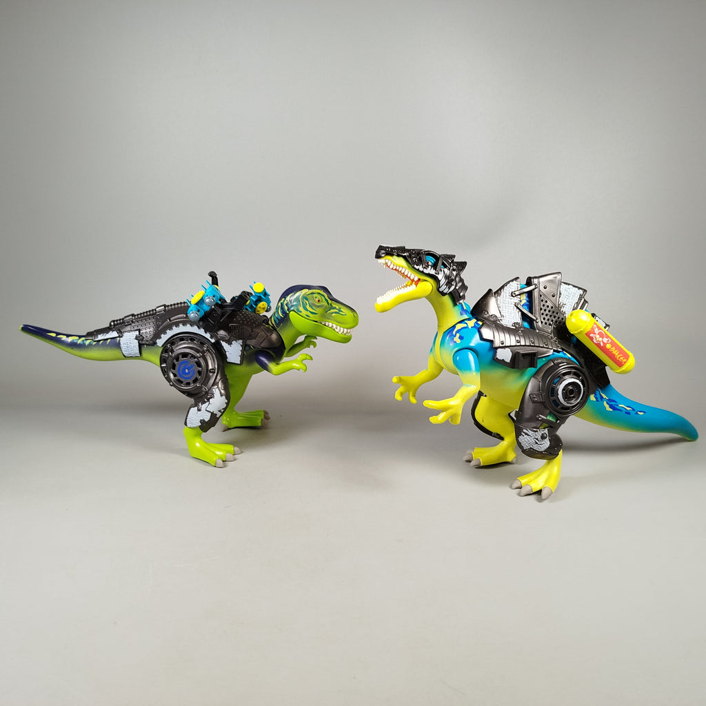 Hol dir das Playmobil Dinosaurier-Set mit zwei detailreichen Figuren im futuristischen Stil! Beide Dinosaurier, darunter ein T-Rex und ein Spinosaurus-ähnliches Modell, tragen mechanische Rüstungen und sind mit Kanonen sowie Reiterfiguren ausgestattet. Ideal für spannendes Rollenspiel und Abenteuer im Dino Rise Universum. Die Figuren zeigen leichte Gebrauchsspuren, sind aber insgesamt gut erhalten. Verpackung und Anleitung fehlen. Das Spielzeug befindet sich in gutem gebrauchten Zustand. Hinweis: Nicht für Kinder unter 3 Jahren geeignet, da Kleinteile verschluckt werden können.