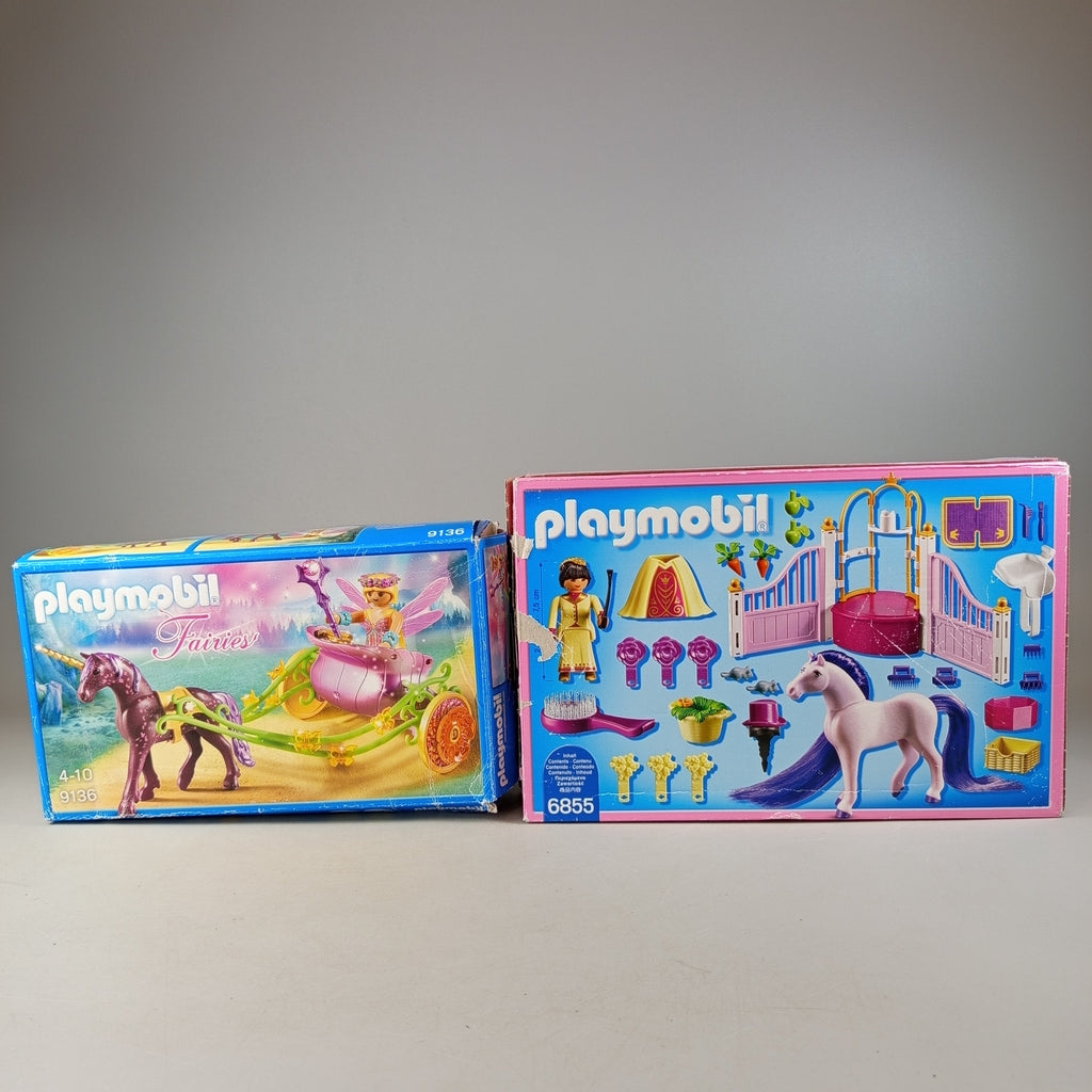 Hol dir das Playmobil Feen- und Pferdepflege-Set mit den Sets 9136 und 6855. Enthalten sind Figuren, ein Pferd sowie zahlreiche Zubehörteile wie Zäune, Sättel, Rosetten und Karotten. Beide Sets kommen mit Anleitung und Originalverpackung mit leichten Gebrauchsspuren. Die Vollständigkeit konnte nicht überprüft werden. Das Spielzeug befindet sich in gutem gebrauchten Zustand. Hinweis: Enthält Kleinteile, nicht geeignet für Kinder unter 3 Jahren. Gib diesem Spielzeug ein zweites Leben und bereite Freude beim kreativen Rollenspiel.