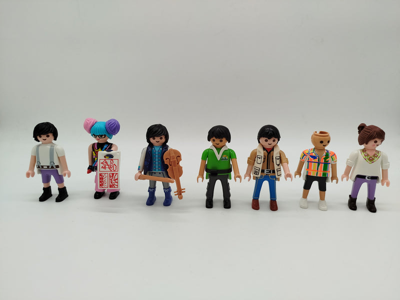 Dieses Playmobil Figuren-Set beinhaltet 13 verschiedene Figuren, die Berufen und Freizeitaktivitäten nachgehen. Ob Braut, Gärtner:in oder Musiker:in - hier ist für jeden etwas dabei. Die Figuren sind gebraucht und in einem sehr guten Zustand. Einer Figur fehlen Haare. Dieses Figuren-Set ist perfekt, um bestehende Playmobilwelten zu erweitern. Gib diesem Spielzeug ein neues Zuhause und unterstütze die Wiederverwendung von Spielzeug. Hinweis: Enthält Kleinteile, nicht geeignet für Kinder unter 3 Jahren. Erstickungsgefahr!