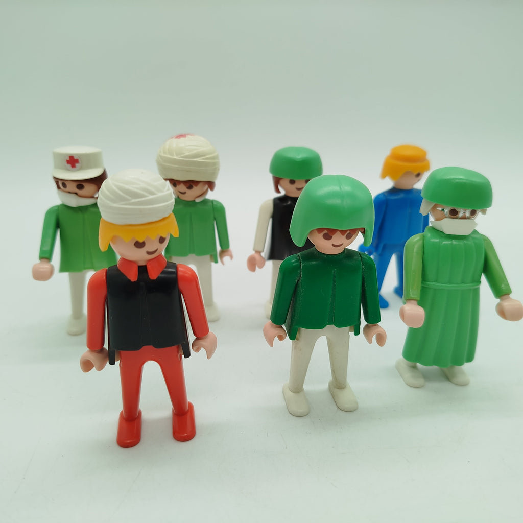 Hol dir das Playmobil Krankenhaus-Set mit 9 detailreichen Figuren und umfangreichem medizinischem Zubehör. Enthalten sind unter anderem Krankenhausbett, OP-Lampe, Monitor, Rollstuhl, Trage, Infusionsständer, Stühle und kleine Instrumente wie Scheren und Spritzen. Einige Teile zeigen Gebrauchsspuren und ein Teil ist gebrochen. Verpackung und Anleitung fehlen, die Vollständigkeit konnte nicht überprüft werden. Das Spielzeug befindet sich in gutem gebrauchten Zustand. Hinweis: Enthält Kleinteile, nicht geeignet für Kinder unter 3 Jahren. Gib diesem Spielzeug ein neues Zuhause und fördere kreatives Rollenspiel!